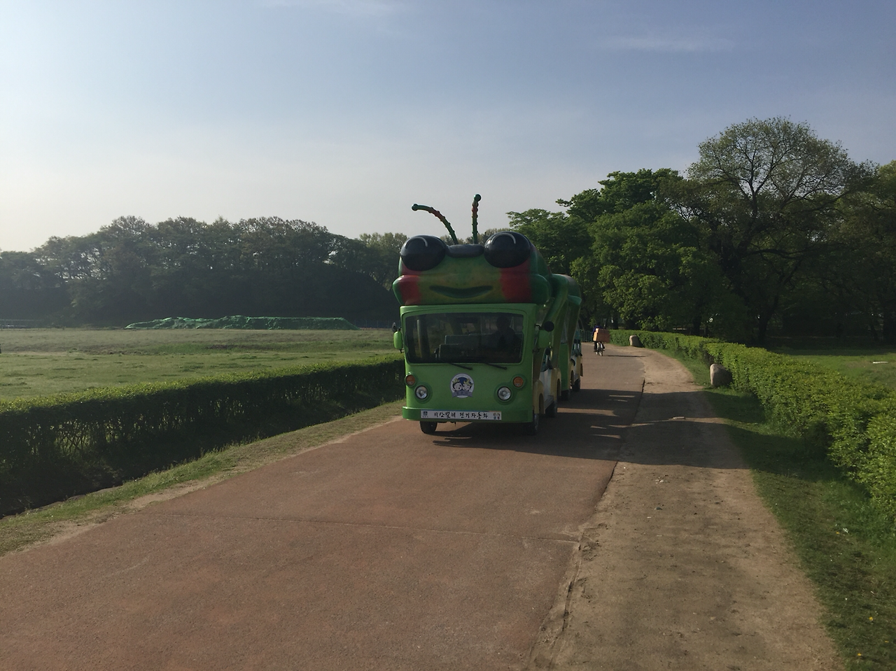 내 뒤에 있는 버스가 날 경주로 데려다 준 버스.