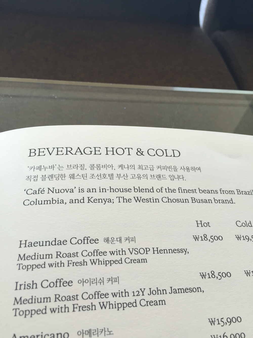 원래는 여기서 마시기 위해 커피를 안 마시려 했으나, 이미 마신 관계로 체험이나 해 보자 하고 술이 들어간 '해운대 커피' 주문.