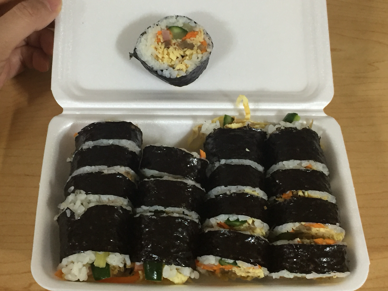 드디어 김밥을 먹는다. 세상에, 딴 음식도 아니고, 김밥을 줄 서서 사서 먹어야 하다니!