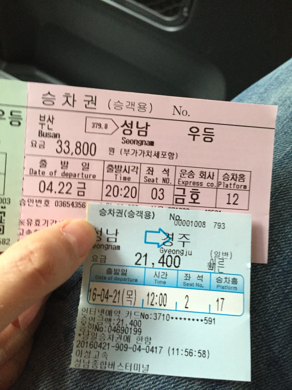 출발도 못할 뻔했다!!! 왜 성남에서 부산 출발 버스표를 주냐고요...(덕분에 다음날 사용할 버스표를 잃어버리지 말아야 한다는 의무까지 부여받음)