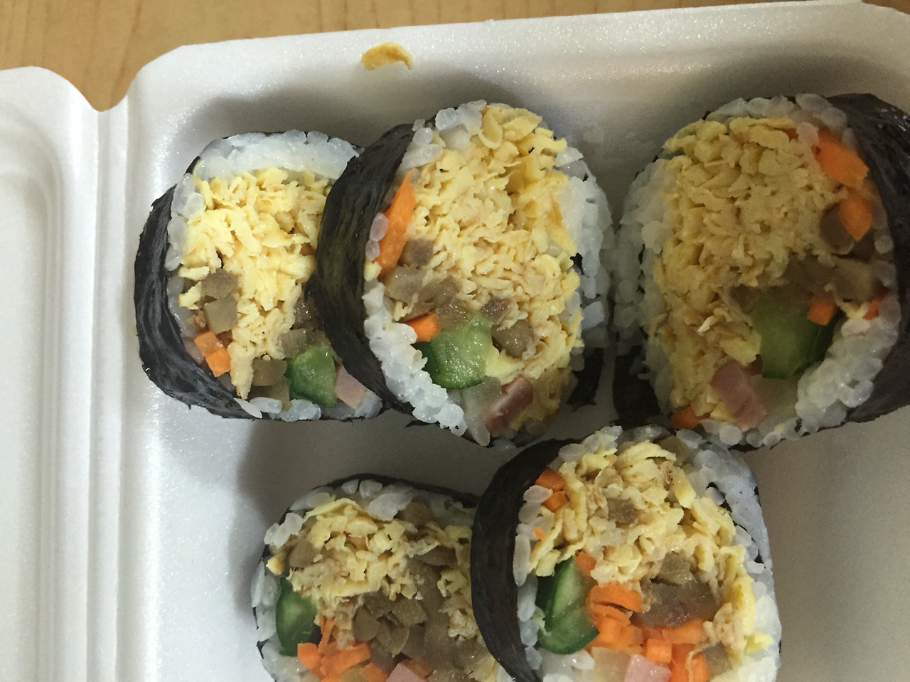 이 곳 김밥의 특징은 계란지단이 듬뿍 들어가는 건데.. 계란도 참 좋아하는데....