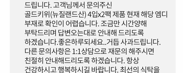 멀쩡한 잼을 키위라고 답해, 다시 문의하게 만든 것 부터 화가 치미른다. 있지도 않은 교환신청은 왜 만들어 둔 것이며, 내가 쓴 내용을 삭제하기 전에 나한테 알려줘야 했던 것 아닐까?