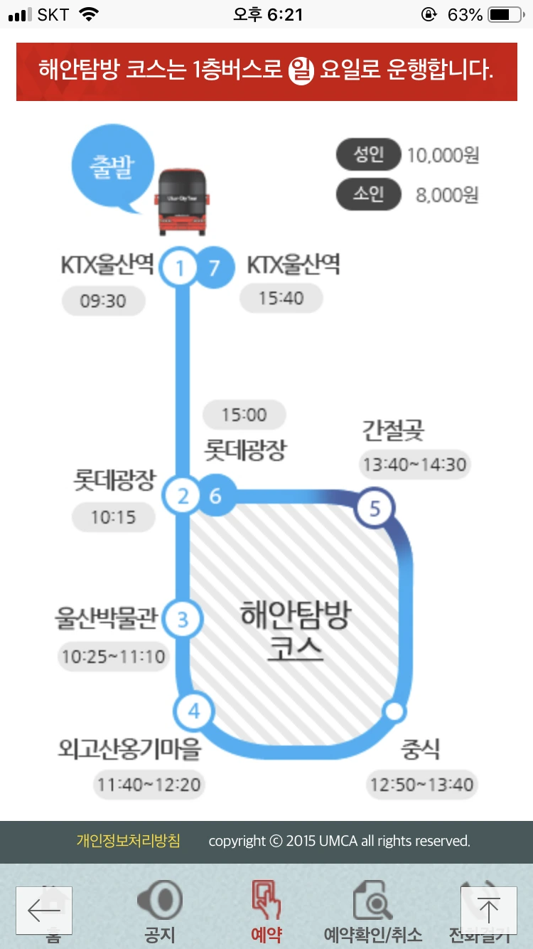 만원인데, 버스표나 기차표가 있으면 7,000원으로 할인.
