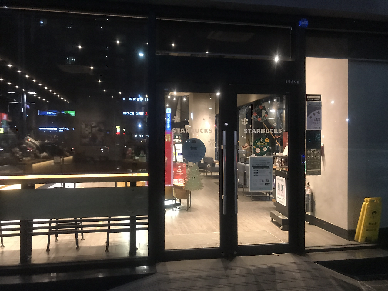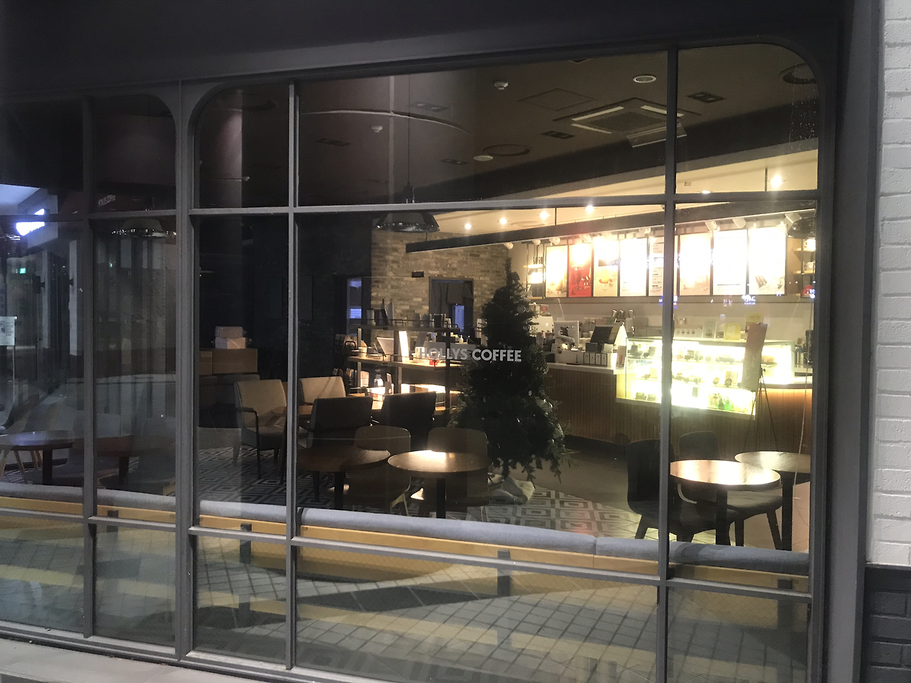 영업이 끝난 매장이 뒷정리를 하는 동안 조명을 일부만 켜둔 것이다.