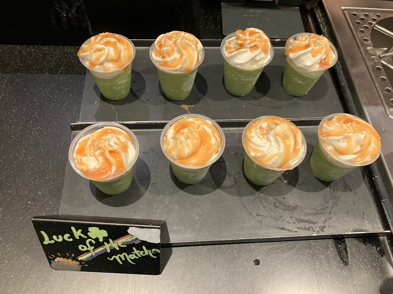 아쉬움이 남지만, 내겐 아직 기회가 있다. 한국 오는 날 아침에 먹어야지.. 호텔 앞 스타벅스는 무려 6시에 문을 연다. 아직 밤 같은 어둠이지만 커피를 사겠다고 나간다. 매장에 갔는데, 앗.. 메뉴에 없다. 좌절… 그러나 열심히 스타벅스를 뒤져 그 메뉴를 보여주니 있다고 한다. 아싸… (알고 보면 작년 시애틀 공항에서도 있었던 것 아닌지…).. 이런 새벽부터 말차프라푸치노 시음도 한다. 친절하게 이것도 맛보라 한다. 아, 음료는 올리브오일맛 제대로다. 초반엔 괜찮다가 나중엔 느끼해서 못 마시겠는;;;.. 반 정도 버림.