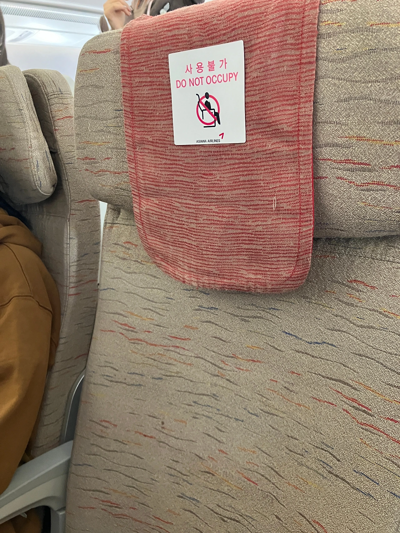 내가 지정한 자리는 원래 뒷쪽이었는데.. (창가가 아닌 중간열 복도쪽 좌석을 하려고 보니 남은 자리 중 가장 앞이 40번대였다), 비즈니스석 변경을 물어보는 와중, 좌석만 변경가능하다 해주었는데, 앞쪽이었다. 보통 앞쪽을 선호해서 이것도 매우 고마웠는데.. 탑승을 하고 있는데 옆자리에 사람이 오지 않는다. 장시간 비행에서 이웃은 매우 중요하다. 대체 누구지.. 하고 그때서야 옆좌석을 보는데 '사용불가' 스티커가.. '아싸' 하려는 순간 승무원이 오더니, 옆좌석은 비어있지만, 다른 좌석의 고장등으로 사람이 올수 있다고 안내를 해준다. 냉탕과 온탕을 오간 기분이었다. 발권해 준 직원이 알고서 해준 건지, 결과적으로 이렇게 된건지는 모르겠지만, 매우 감사. 옆좌석이 빈게 이렇게 편하다니... (비행기를 돌아보니 15석 정도가 비었다.)