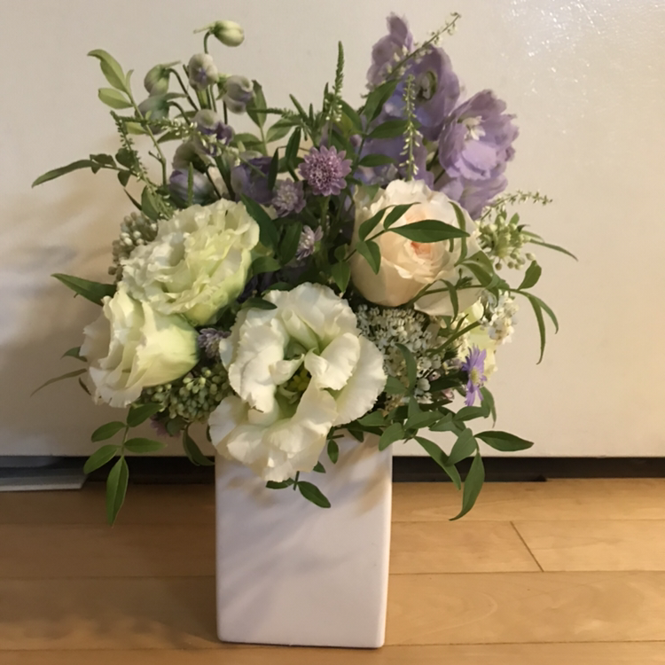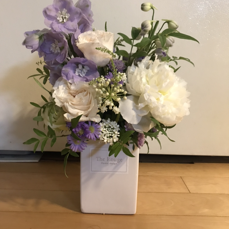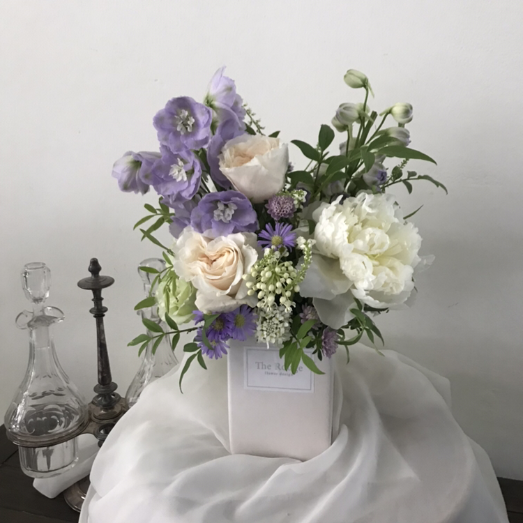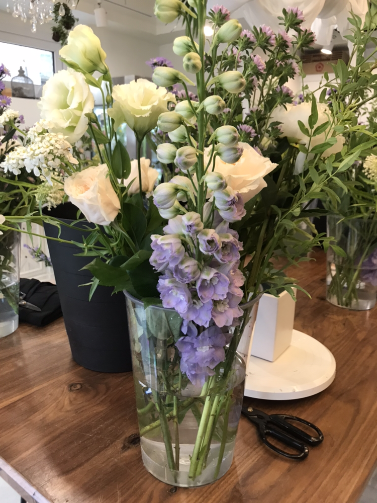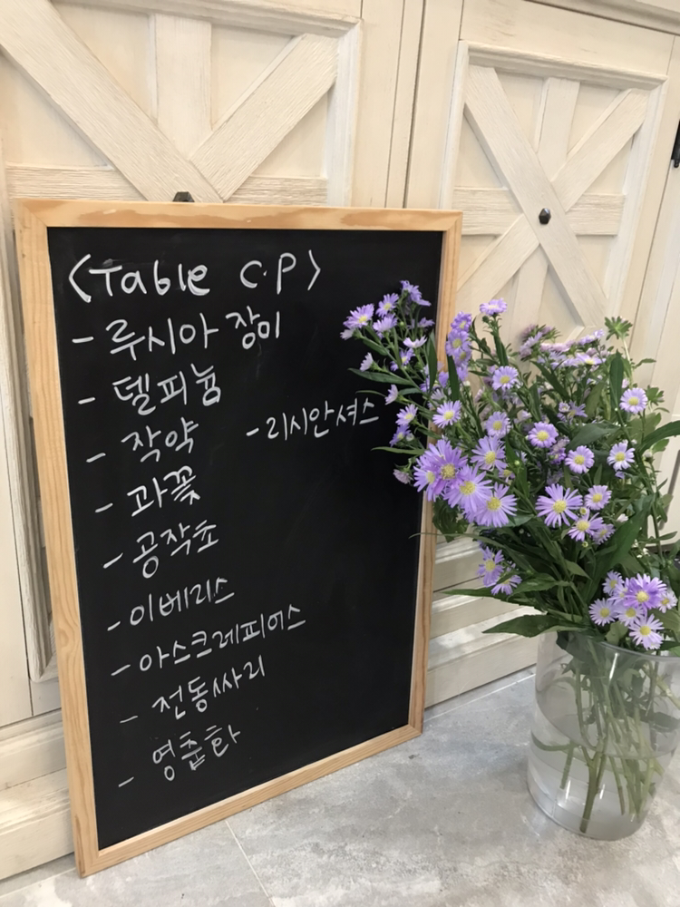큰 꽃(작약, 장미, 리시안셔스)을 너무 중앙에 꽂으면 부담스러울 수 있다!