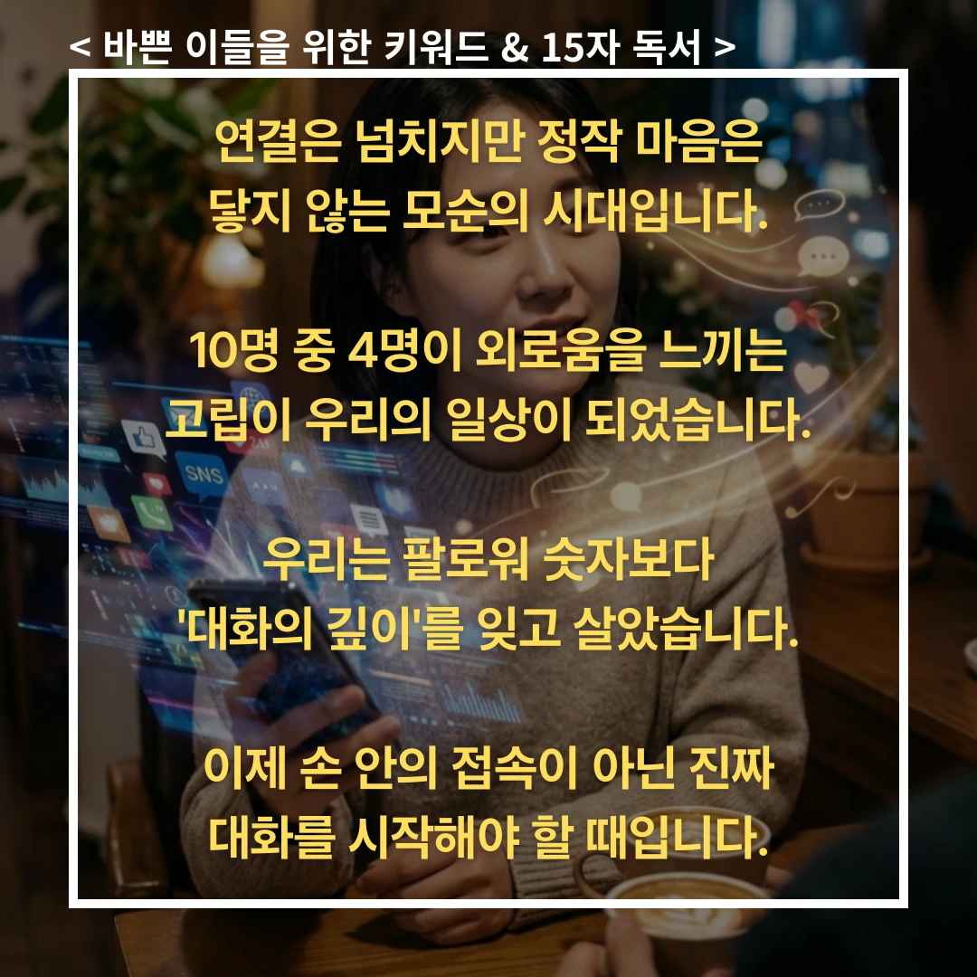 외로움의 반대말은 ‘많은 사람’이 아니라 ‘깊은 대화’다.