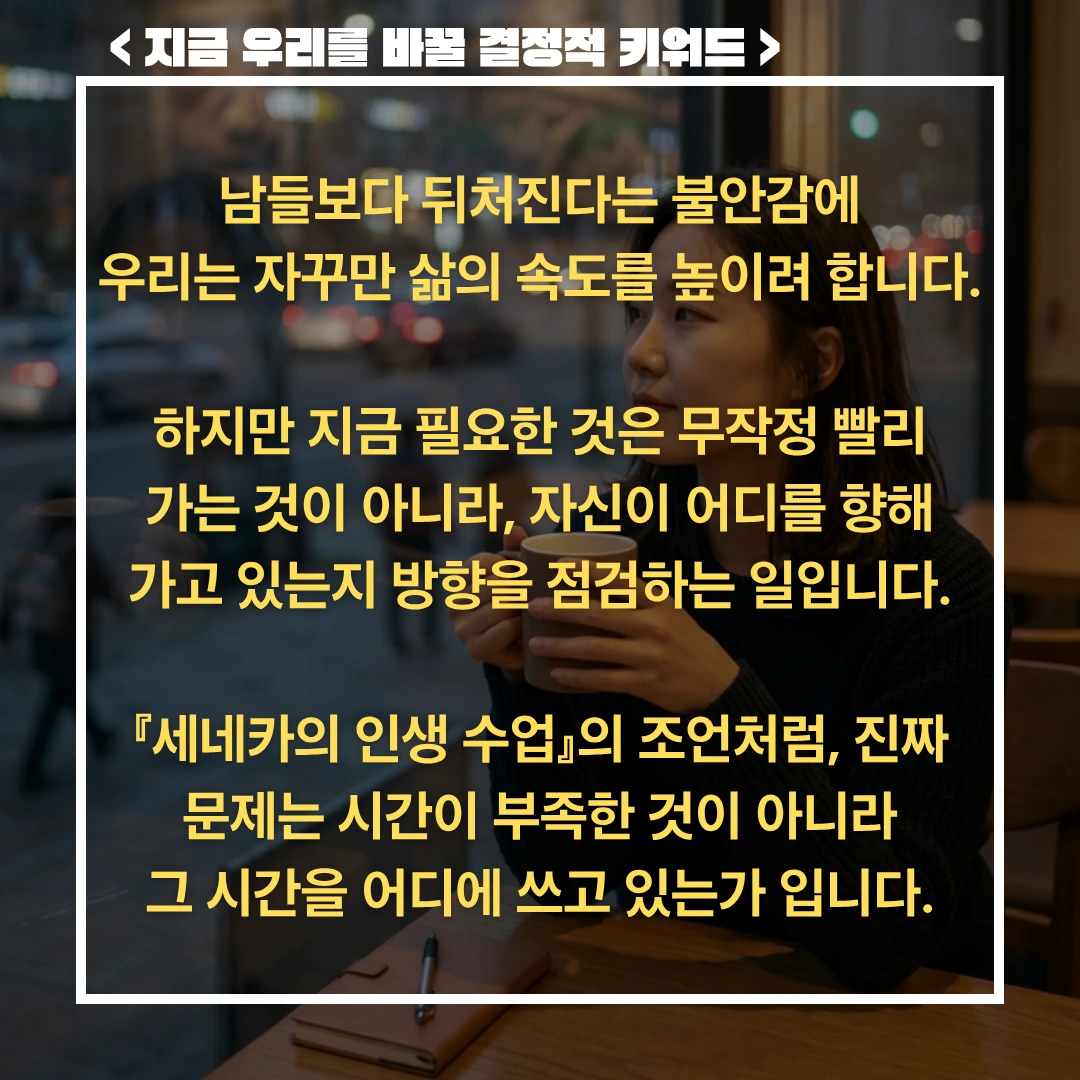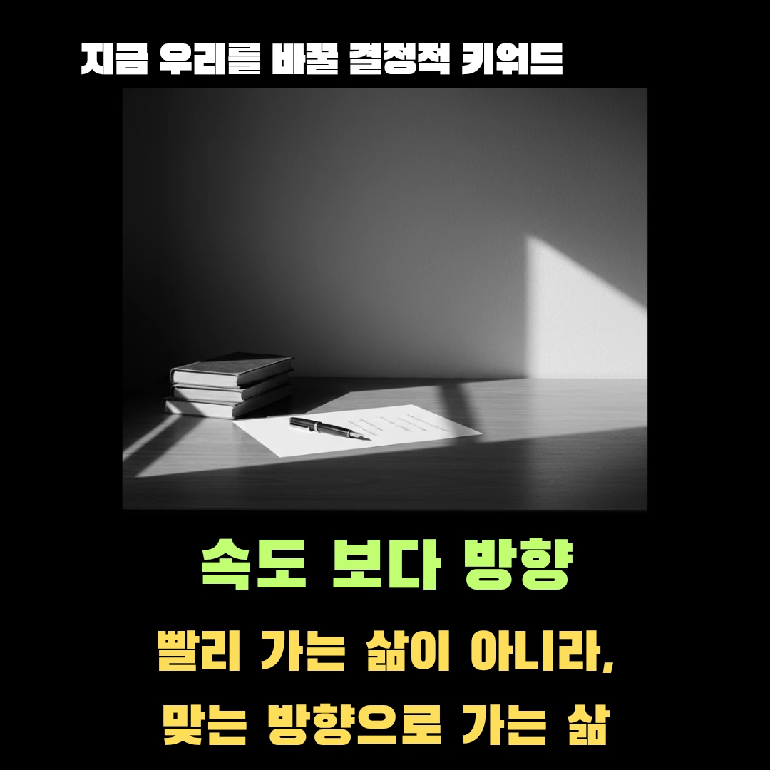 이때 필요한 건 속도를 높이는 것이 아니라 지금 내가 어디를 향해 가고 있는지 다시 묻는 것이다.