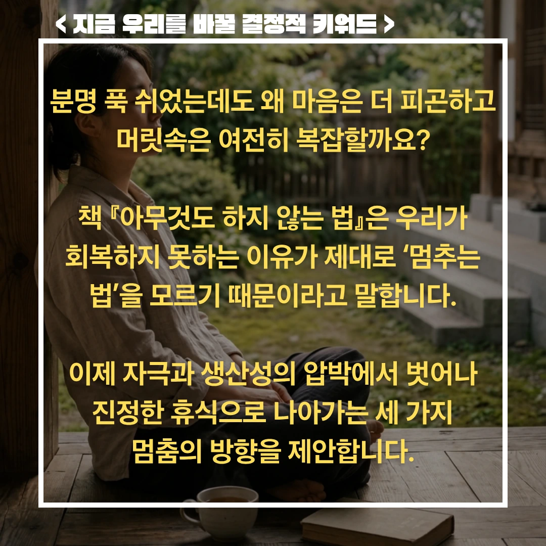 문제는 우리가 쉬지 않아서가 아니라 제대로 멈추지 못해서일지도 모른다.
