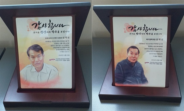 ▲ 존경하는 으뜸 선배 공무원패(2020년, 2021년). 심재성 은퇴자는 후배들이 자신을 인정해줬다는 것에 감사하고 자랑스러워한다.