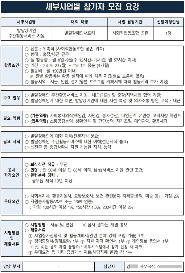 - 2023년 5월 사회적협동조합 공존 취업(성인 발달장애인 주간활동 서비스 지원)