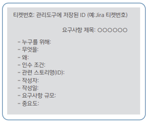 상품관리자와 상품개발 팀의 협업이 원활하고 내용에 대한 이해도가 높으면 키워드 중심으로 사용자 스토리를 작성해도 됩니다. 사용자 스토리는 소통의 수단입니다