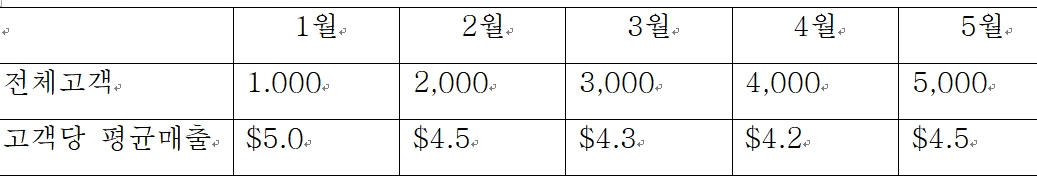 • 월별 고객은 1,000명씩 증가한다.