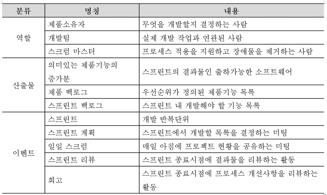 스크럼 구성의 핵심을 설명하면 다음과 같다.