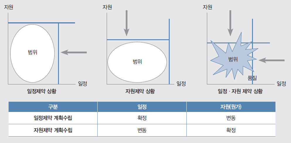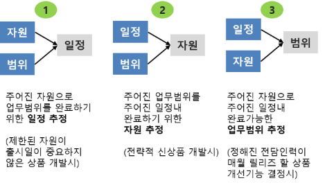 ② 일정제약하에 주어진 업무를 완료하기 위한 자원을 추정