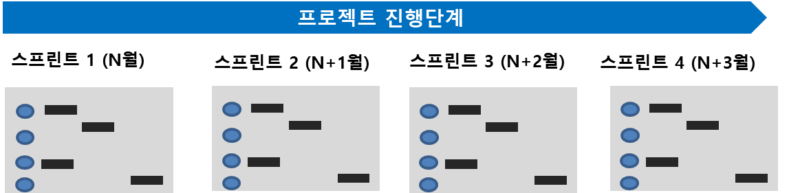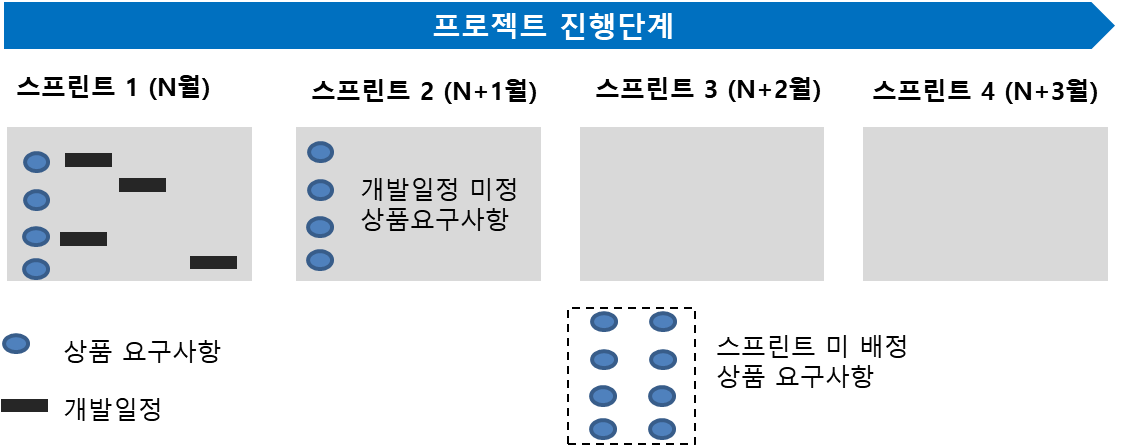 • 스프린트 주기는 프로젝트 상황에 따라 결정하되 동일주기를 유지한다.