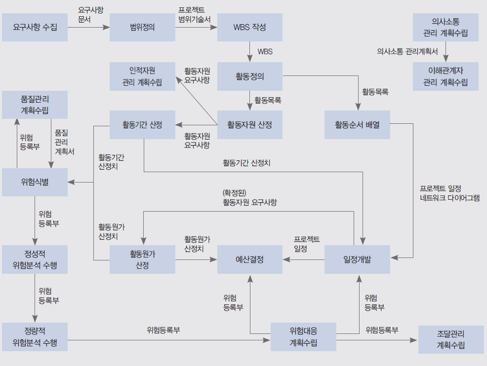 PMBOK에서 제시하는 프로젝트 계획수립의 순서는 아래 그림과 같다.