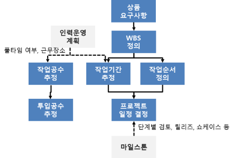 ③ 작업기간, 작업수행 순서, 마일스톤을 고려하여 프로젝트 일정을 결정한다.