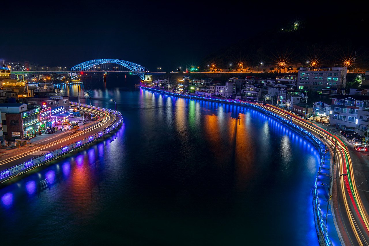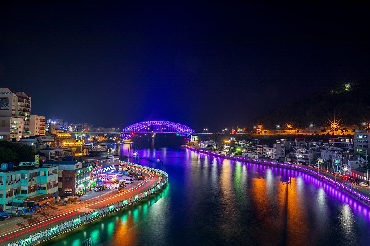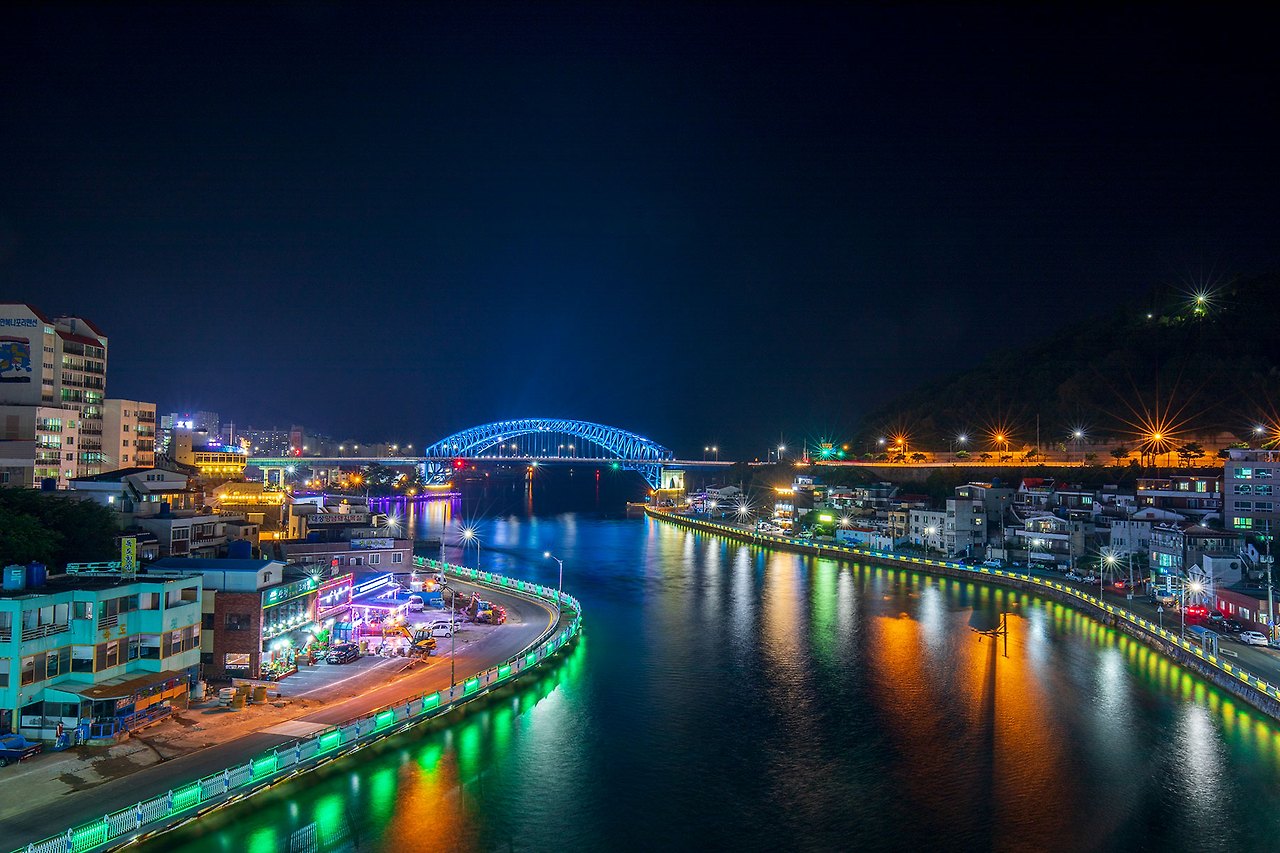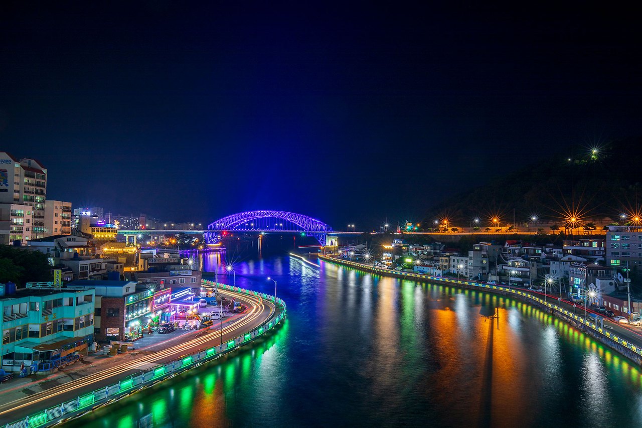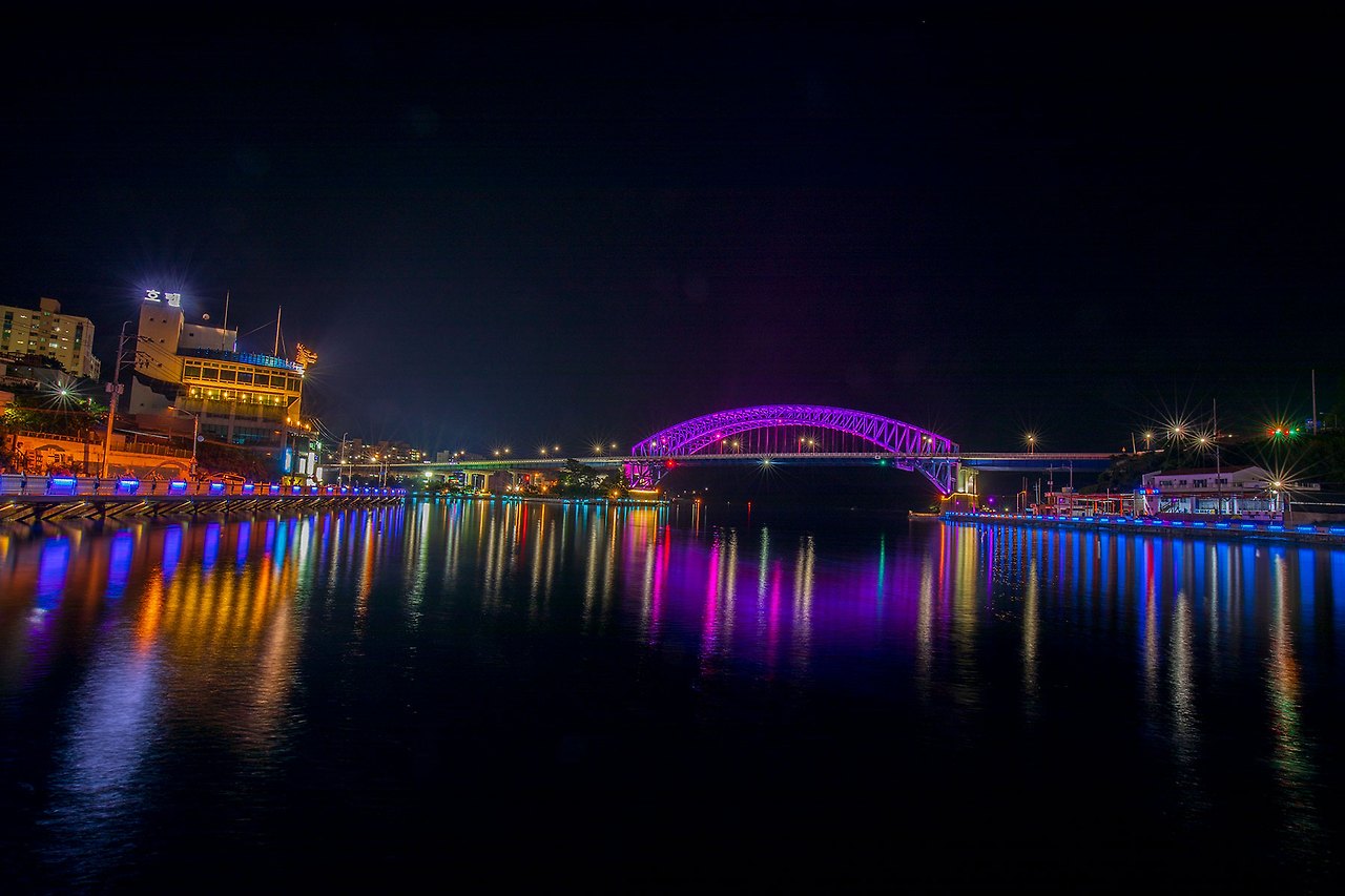 충무대교에서 바라보는 통영대교의 야경이 괜찮다 하여.
