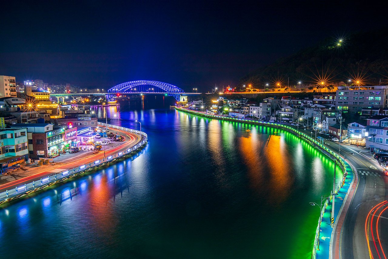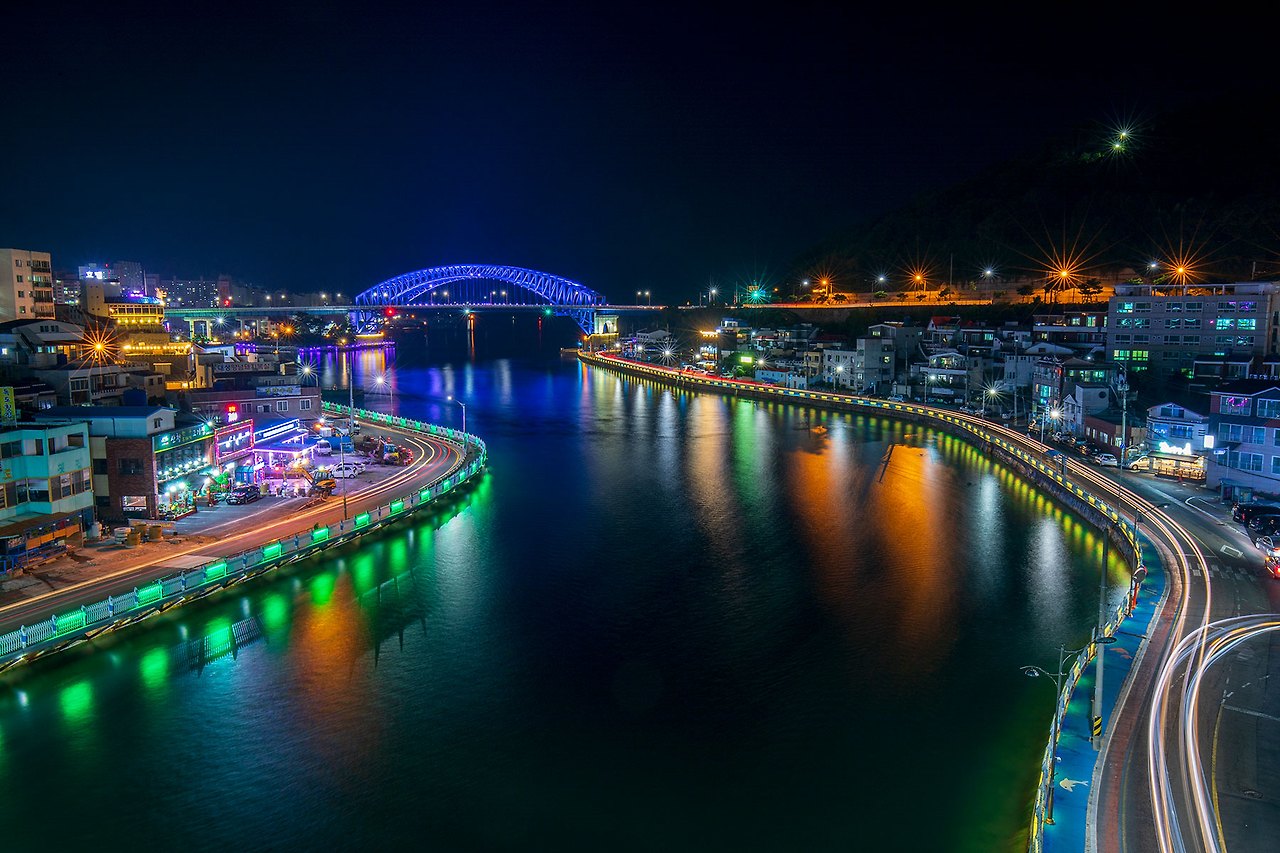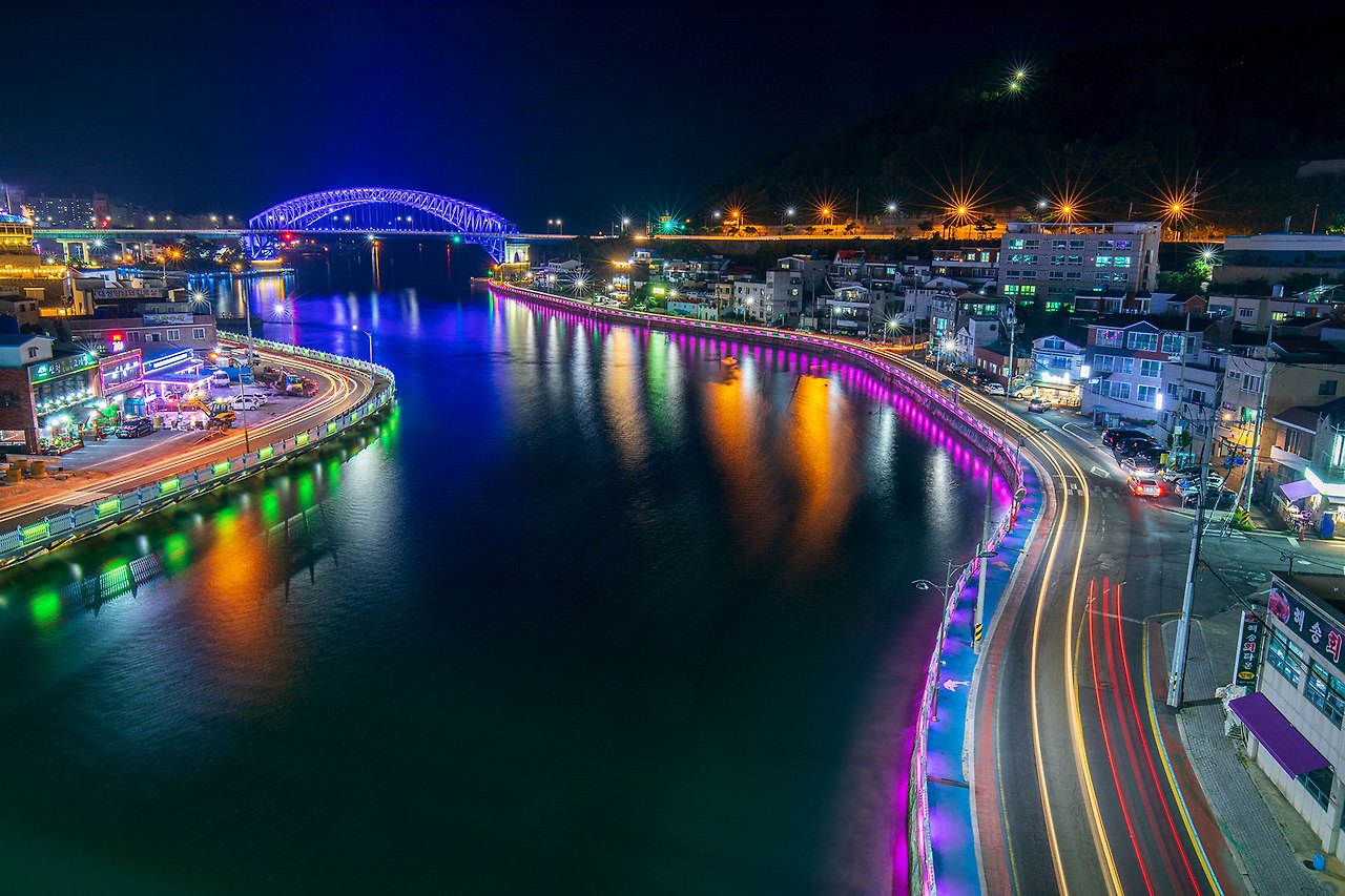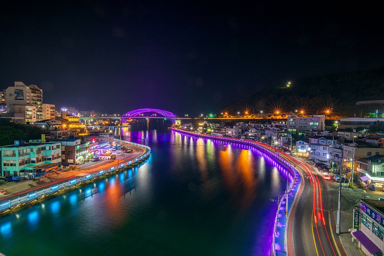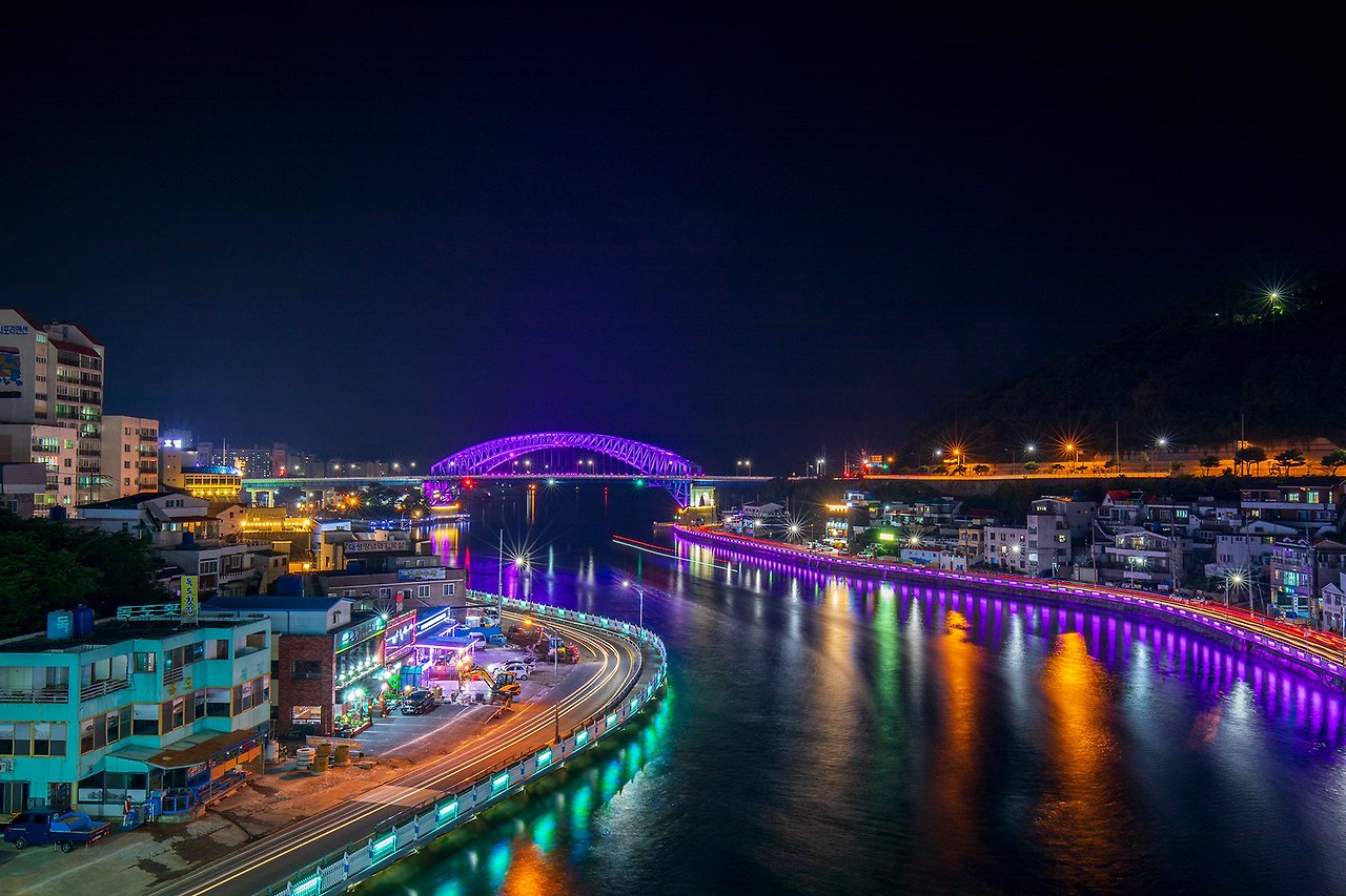 충무대교에서 바라보는 통영대교의 야경이 괜찮다 하여.