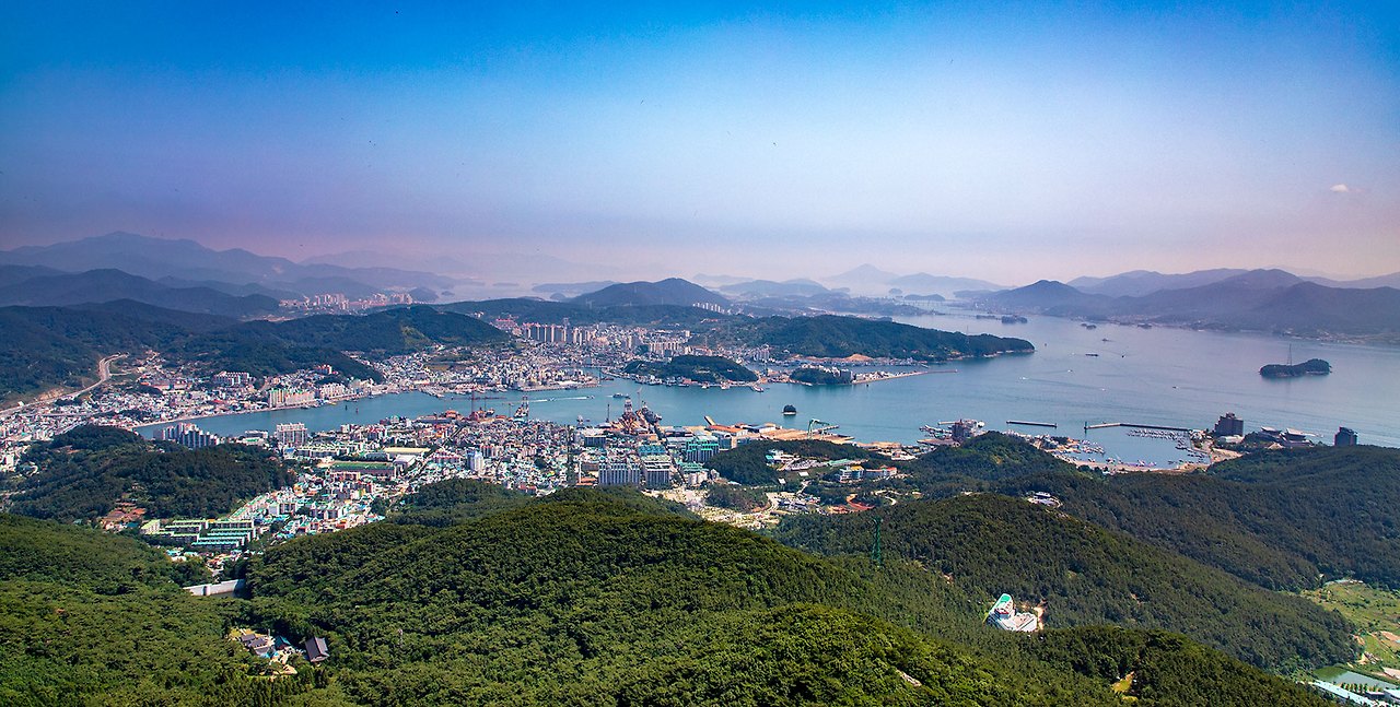 미륵산에서 바라본 통영시내.