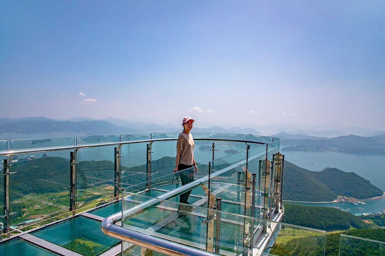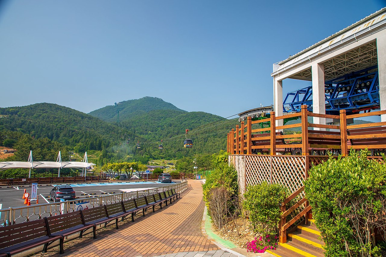 미륵산 8부능선까지 오르고 나머지는 걸어서 올라가 해발 461m의 미륵산을 오를 수 있다.