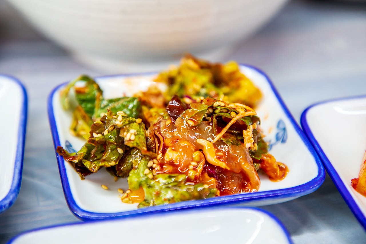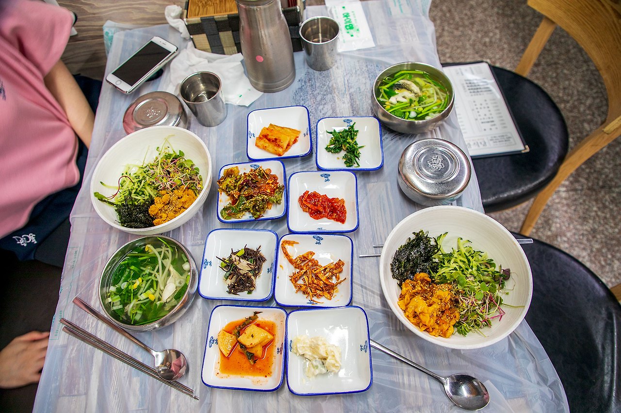 이곳 특유의 성게비빔밥과 멍게비빔밥을 주문하니 멸치회무침과 창란젖을 조금 내어주시는데 맛이 상당하다.