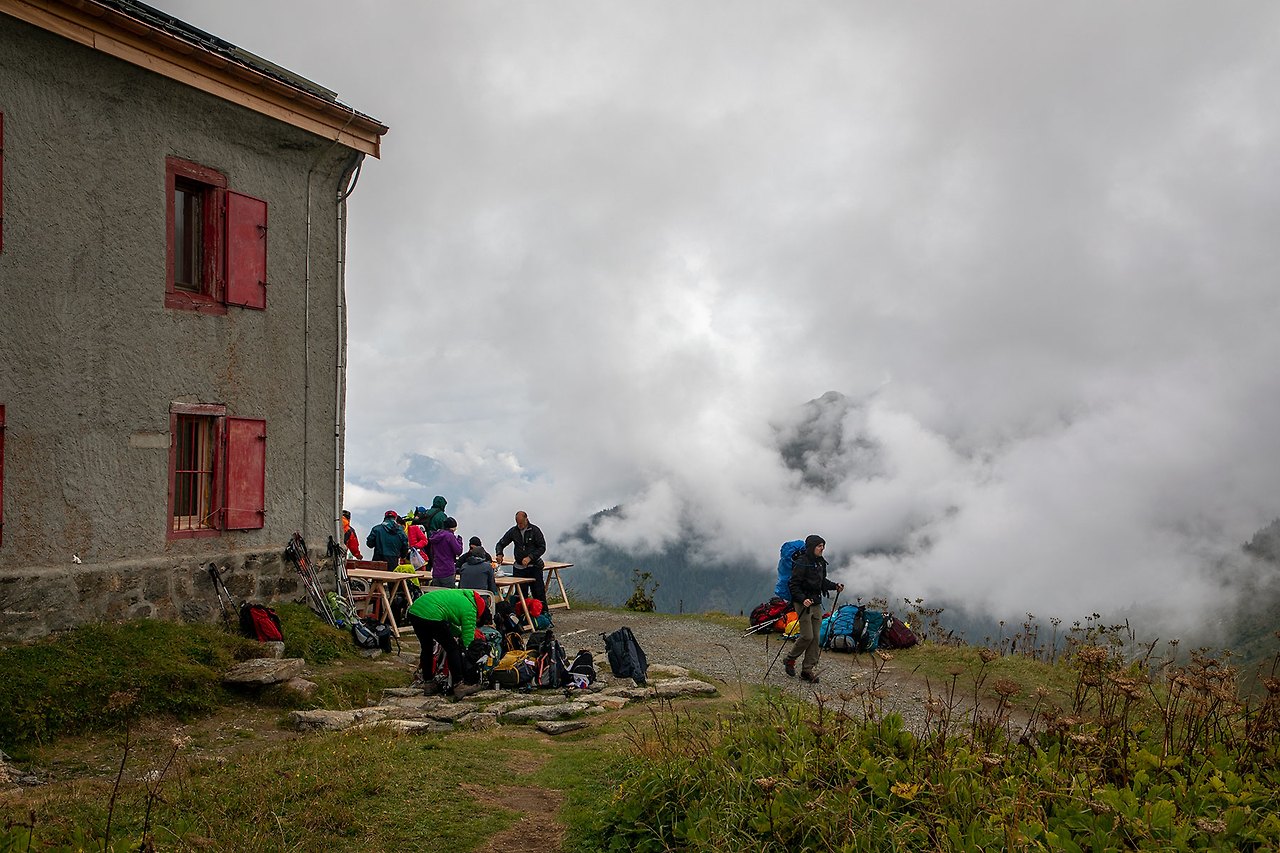 트레킹 들머리인 Le Tour는 샤모니에서 1번 버스를 타고 종점까지 가면 된다. 거기서 Col de Balme 산장까지 케이블카와 곤돌라를 통해서 올라간다. 도착 후 Col de Balme산장에서는 미리 준비해간 도시락과 따뜻한 산장에서의 커피를 곁들인다. 그야말로 산상의 식사.