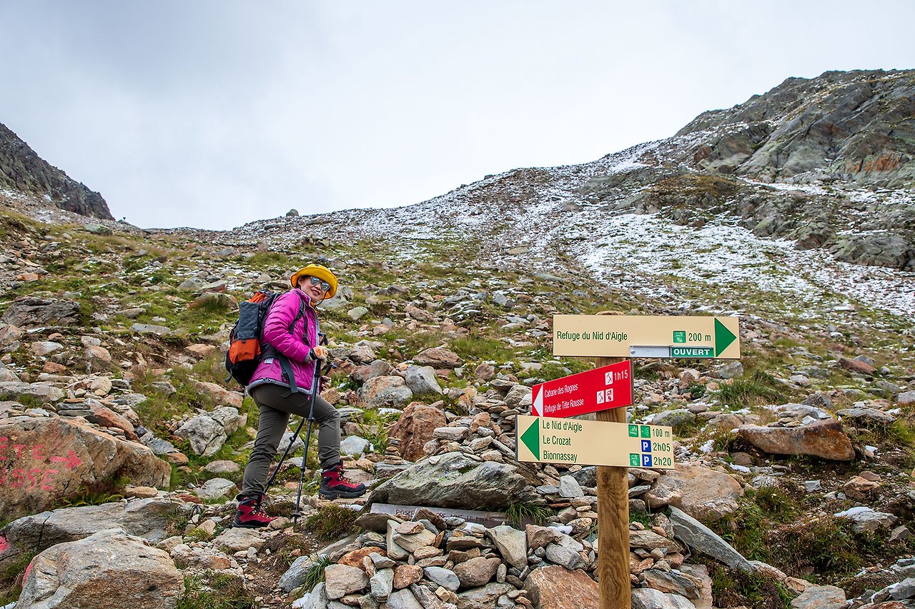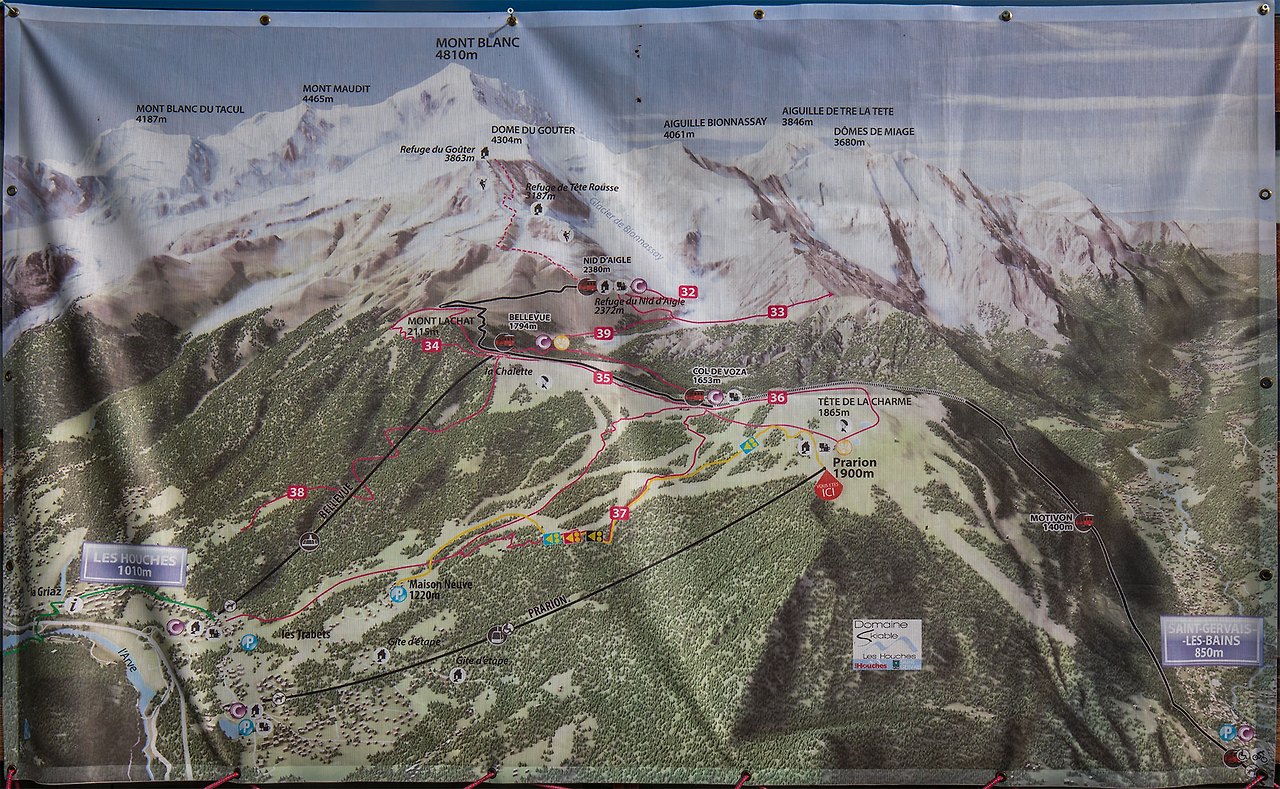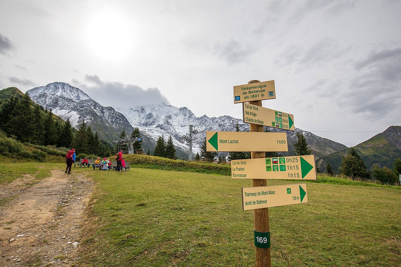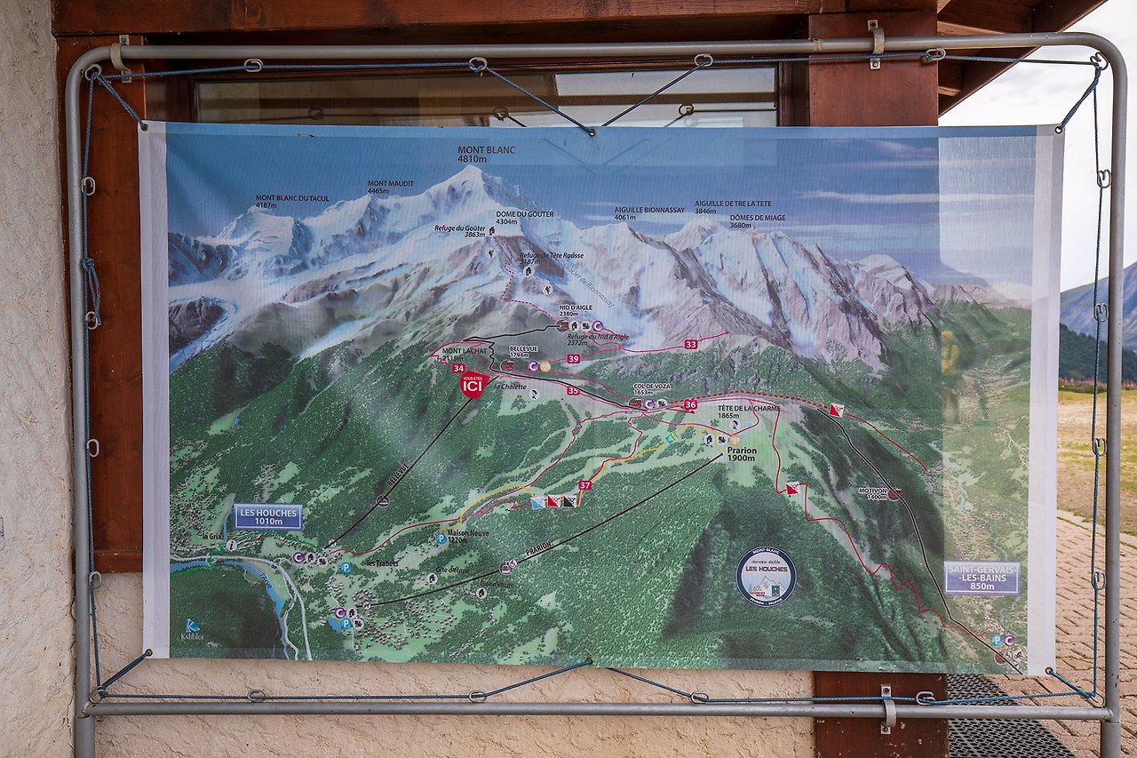 오늘의 코스는 TMB 코스이면서 몽블랑을 오르는 사람들의 전형적인 코스이다. 이곳의 TMB는 Le Prarion(르 프라리리옹, 1860m) - Col de Voza(꼴 데 보사, 1650m) - Gare de Bellevue (벨르뷰 산악열차 정류장, 1794m)에 이르는 길이고 몽블랑을 오르는 길은 Gare de Bellevue에서 Nid d’Aigle(니데글)쪽으로 올라야 한다.