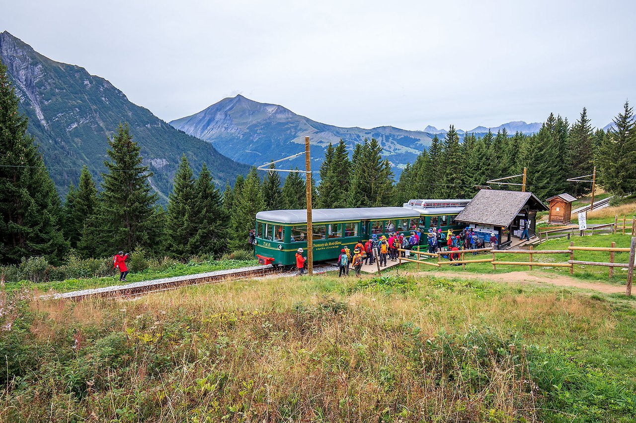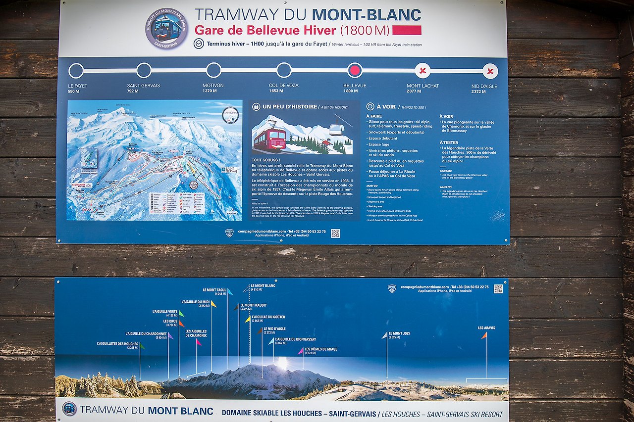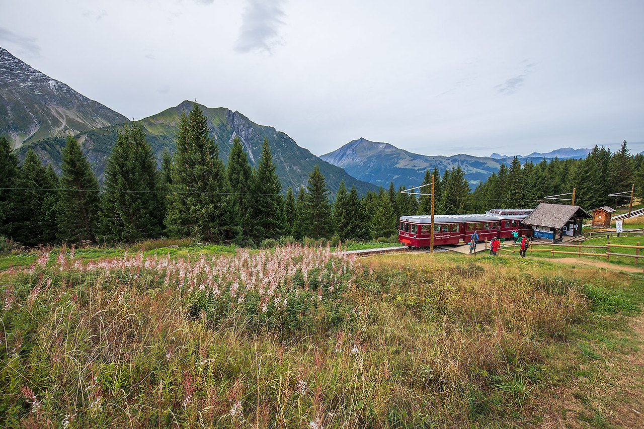 Gare de Bellevue (벨르뷰 산악열차 정류장)이다. 이 산악열차는 대부분 2량으로 이루어져 있으며 이렇듯 7개 역을 가지고 있고 최종 목적지는 니 데글 역. 현재의 해발은 1800m이다.