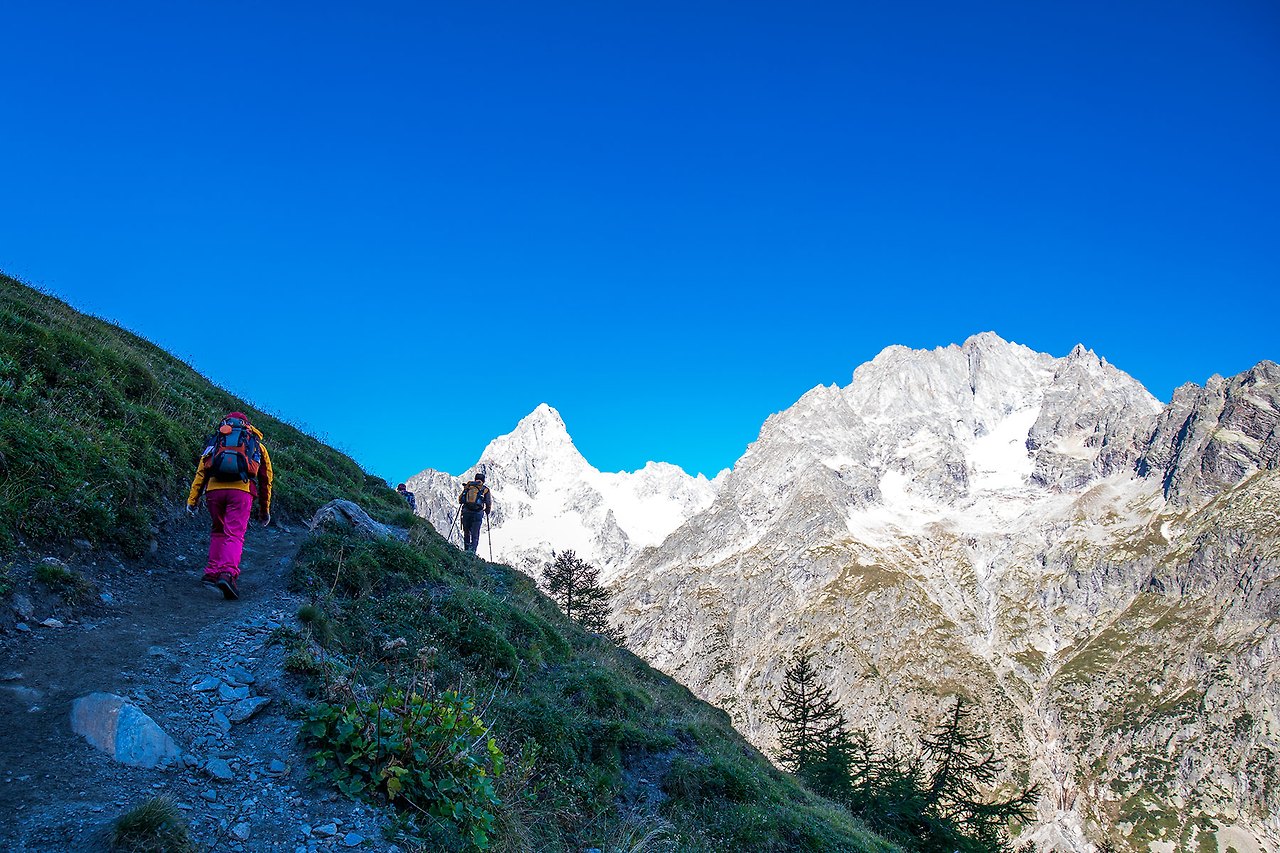 길을 걷는 동안 계속 시야에선 우측의 Grandes Jorasses가 사라지지 않는다.