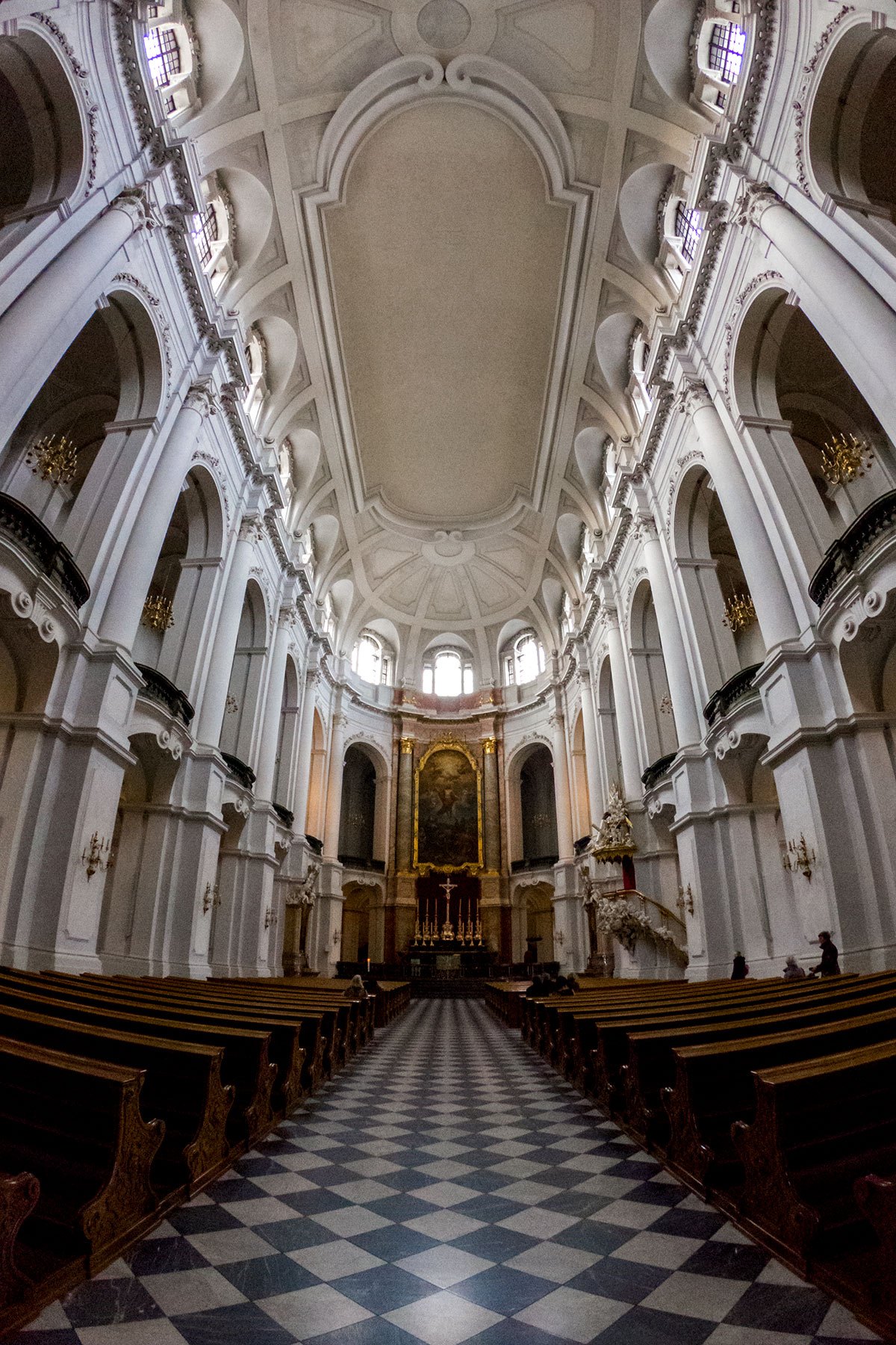 내부는 발타사르 퍼모서(Balthasar Permoser)가 새롭게 단장한 바로크 양식의 강단이 있으며 제단에는 안톤 라파엘 멩그스가 1756년에 그린 '예수님의 승천'이 걸려 있다. 또한 18세기 최고의 오르간 제작자였던 고트프리트 질버만의 최후의 작품인 오르간이 유명하다.