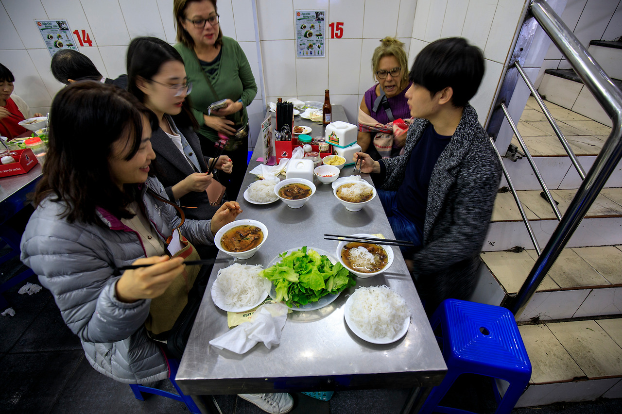 이미 많은 사람들이 분짜집에서 분짜를 먹고 있는게 아닌가?