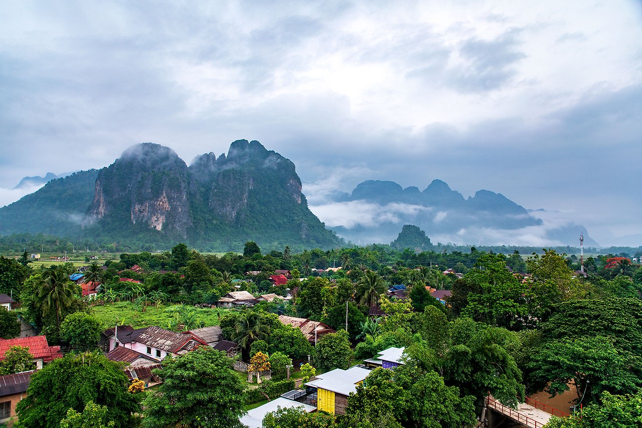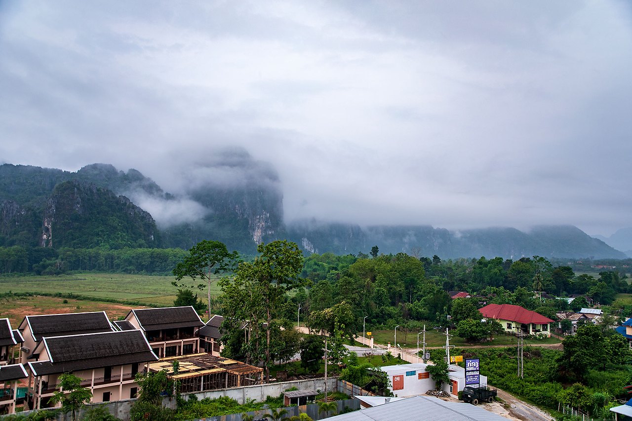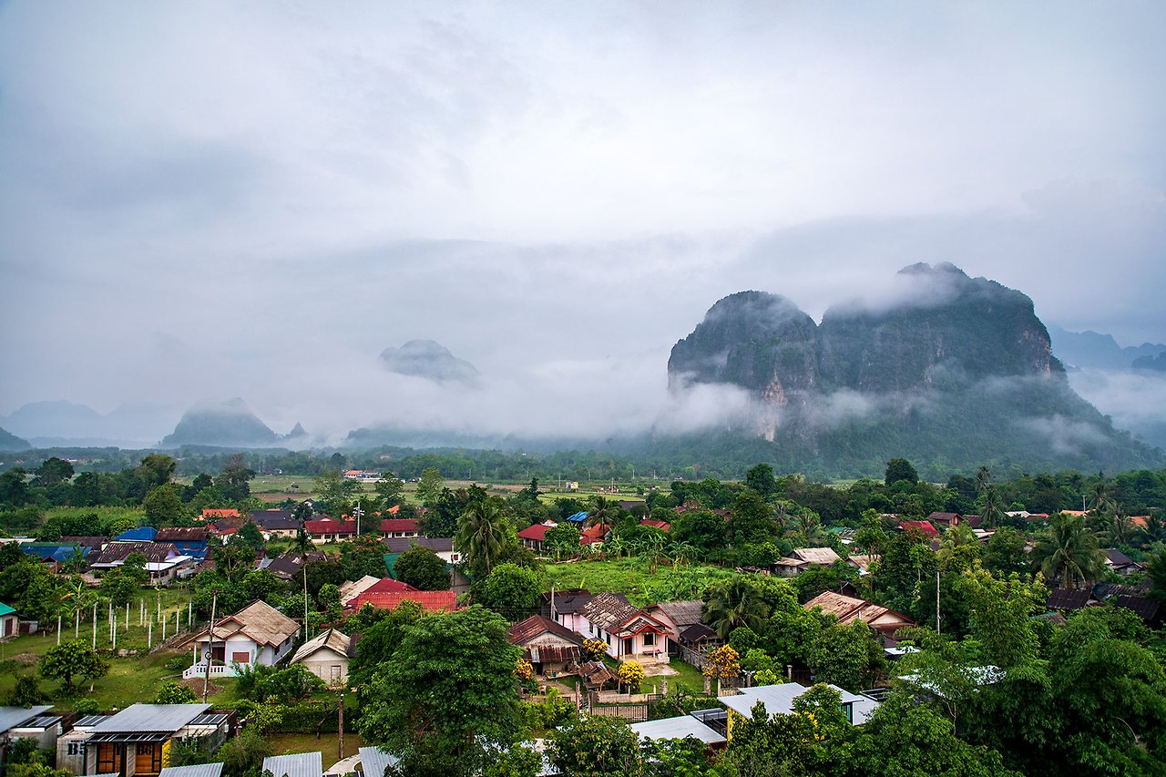 방비엥 산과는 반대편에 있는 방비엥 시내 아침 풍경.