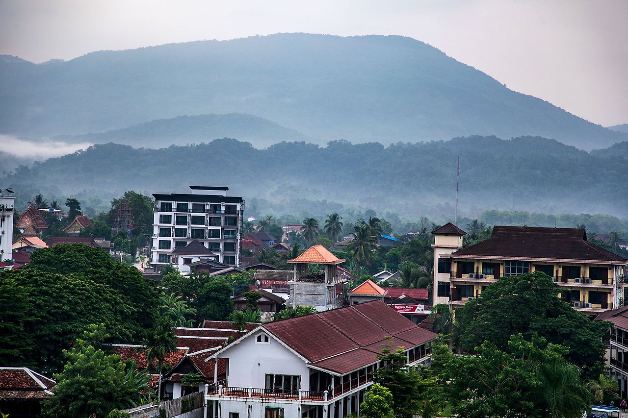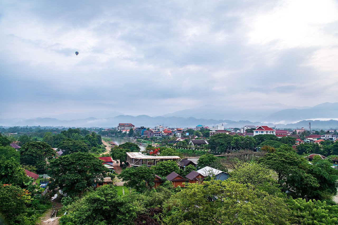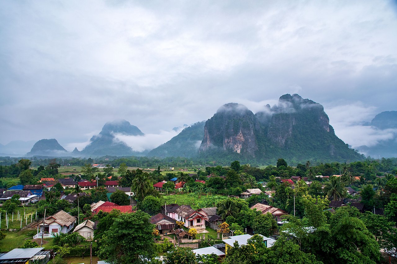 방비엥 산과는 반대편에 있는 방비엥 시내 아침 풍경.