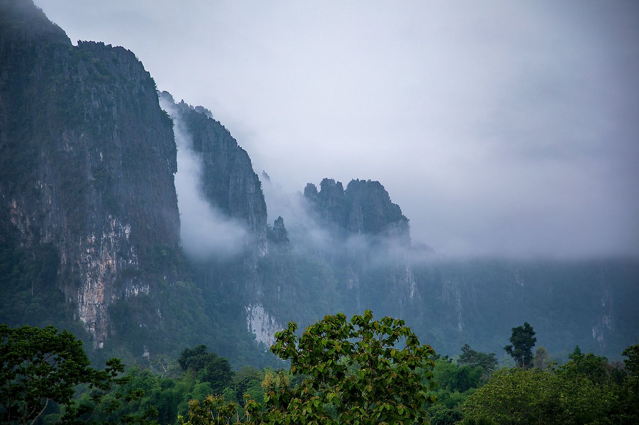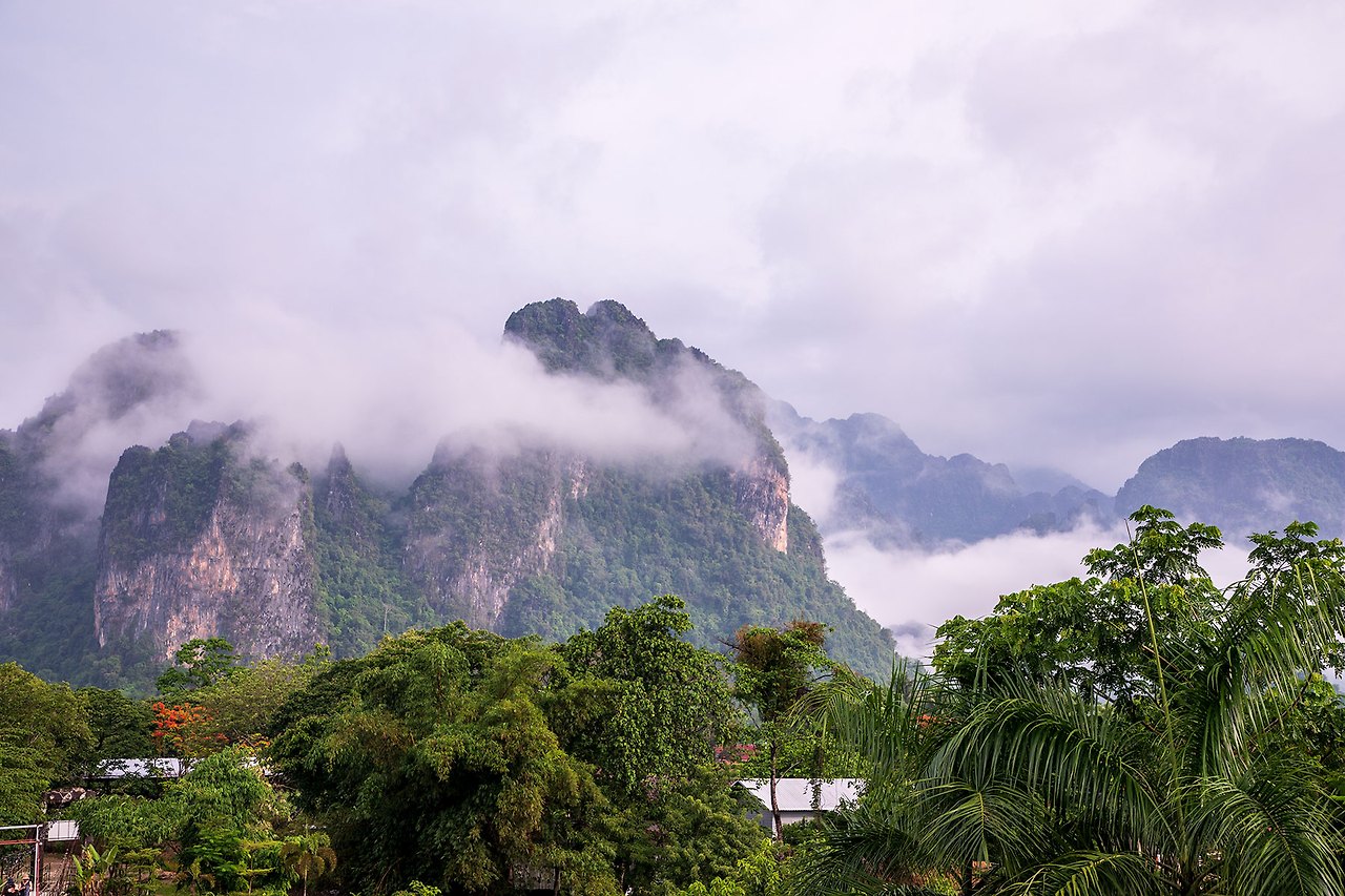 시시각각으로 변하는 방비엥 산와 비로 인해 형성된 운해를 찍어내기 위해.
