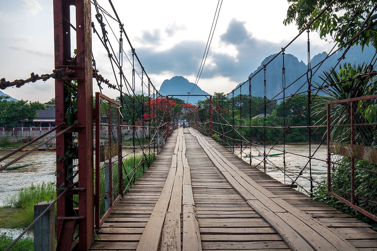 방비엥으로 들어가기 위해선 유일한 방법밖에 없는데 그 다리를 건너려면 차량이든 오토바이든 사람이든 무조건 1$씩 건네야 통과할 수 있다. 우리도 돈을 건넨다. 걸어서......