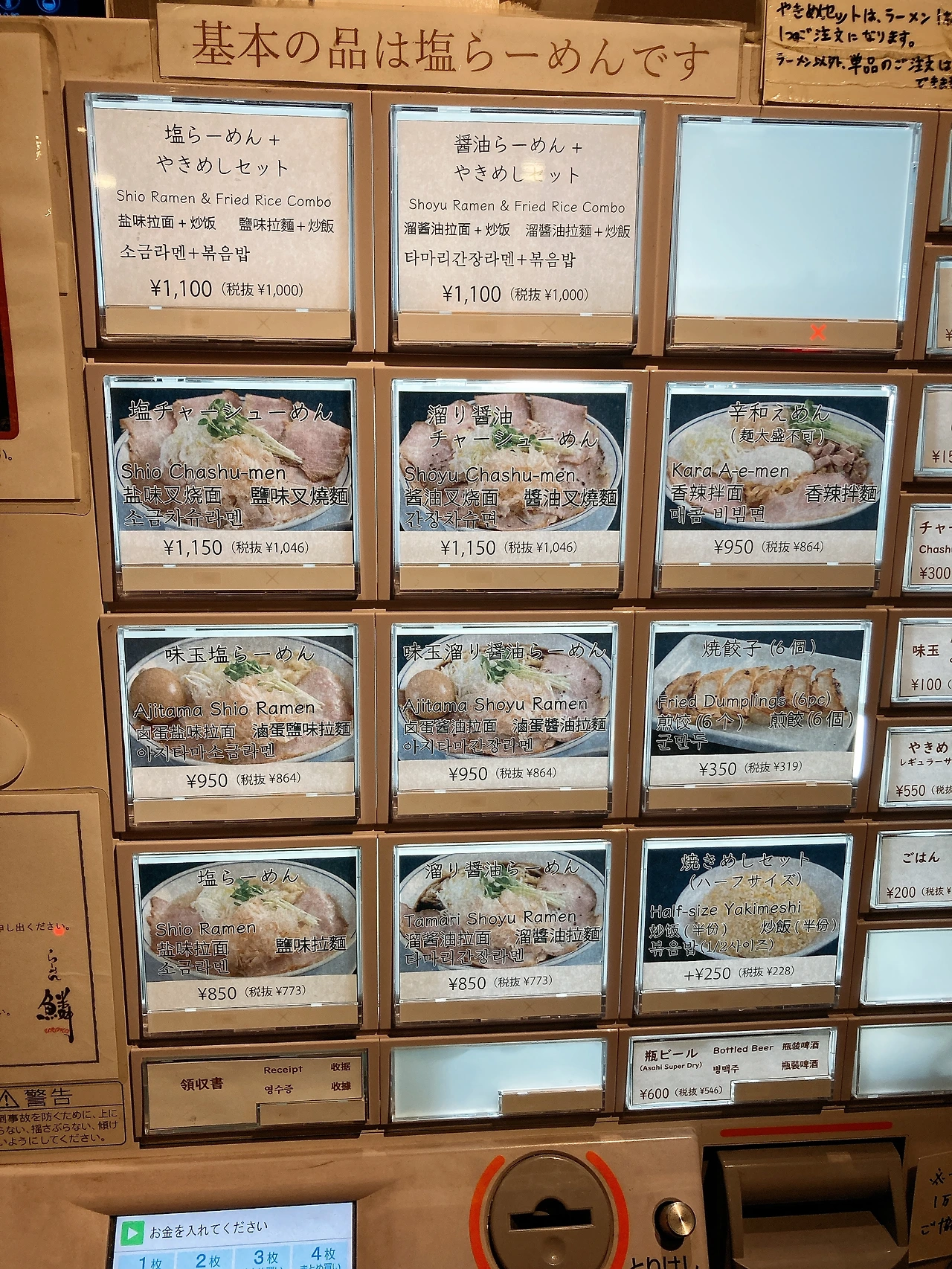 라멘 우로코라는 이름을 들었을 때 제일 먼저 들었던 생각은 ‘해산물 육수 라멘’이었다. 가게 이름이 우로코(鱗비늘)다 보니 당연히 해산물 육수를 떠올린 것이고, 메뉴 이름은 시오(소금)라멘이라고만 쓰여 있으니 이름만 보고 육수의 종류를 알 수 없기도 했다.