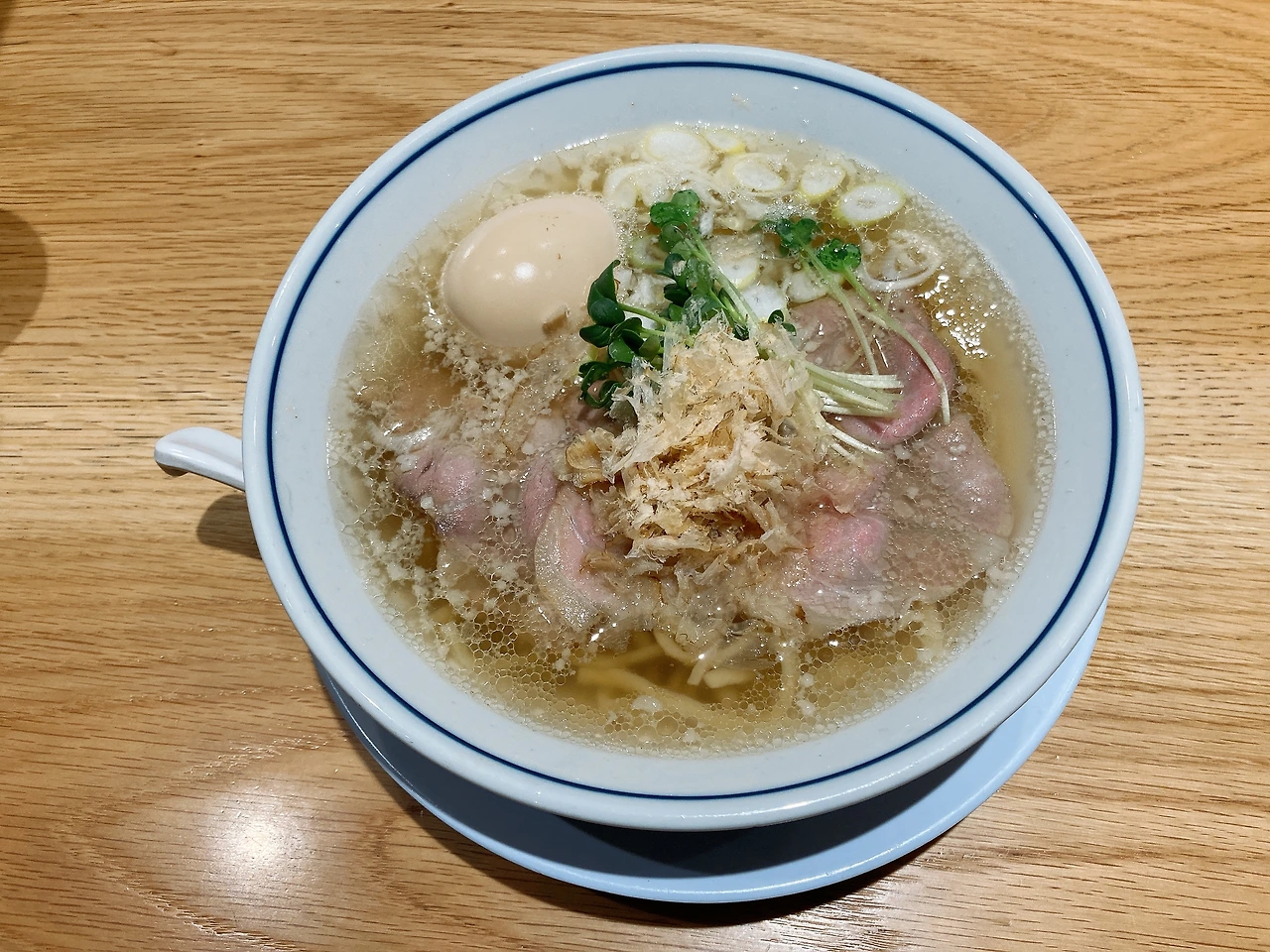 우로코의 시오 라멘, 맑은 육수와 고명으로 가츠오부시 같은 것을 올린 것을 보면 가츠오부시 베이스의 해산물 육수라고 생각했다. 그런데 막상 먹어보면 해산물 육수의 느낌은 들지 않고 왠지 익숙하면서도 익숙하지 않은 맛에 정체를 고민했다. 가츠오부시라는 선입견은 있지만 생선의 맛은 아니고… 왠지 햄 같은 맛?