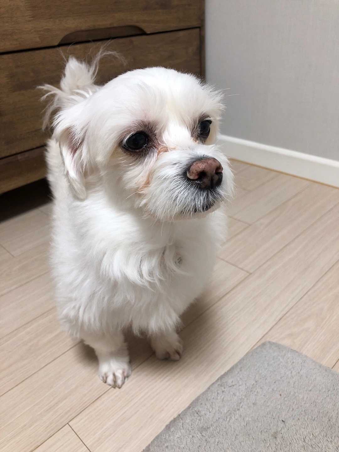“우리 상구가 노견이라 신경통이 온 것 같다고 하셔. 주사 맞고 약 먹고 지켜보기로 했어.”
