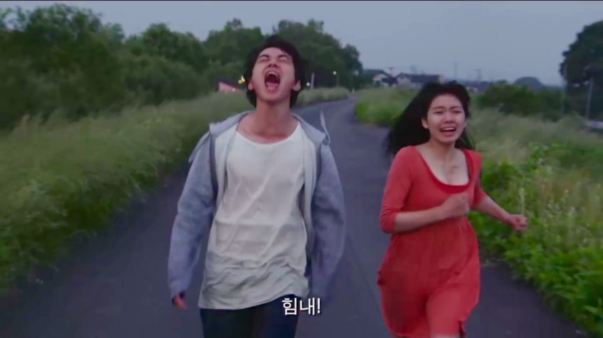 결말부, 주인공(스미다)이 비를 헤치고 앞을 향해 달린다. "스미다군. 파이팅"이라는 메시지를 외치는 상황이다. 주인공 앞의 갈등이나 난관은 전혀 해결되지 않았다. 이야기의 논리로는 절망 속에서 허우적거리는 '주인공'이 되어야 마땅한데, 이상하게도 '희망'을 이야기하고 이에 수긍하게 된다. 스크린은 '절망을 보여주지만 관객은 '희망'을 발견하는 순간이다. 논리적 관계를 뛰어넘어 기이한 감정의 도약을 불러일으킨 것이다.