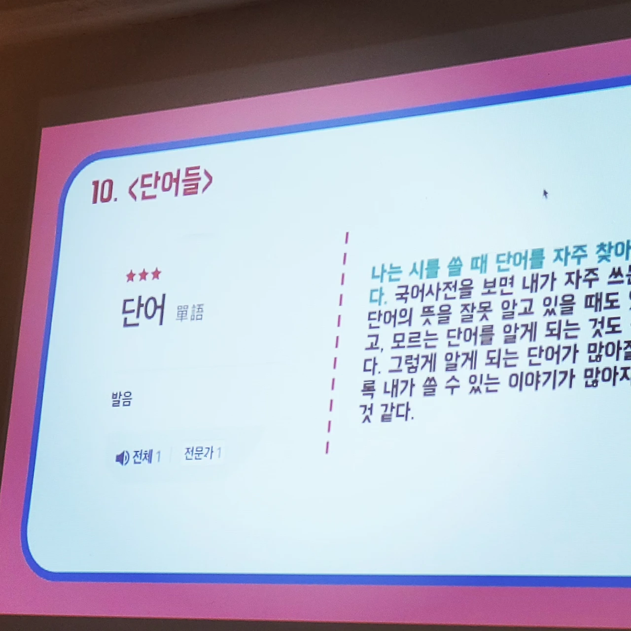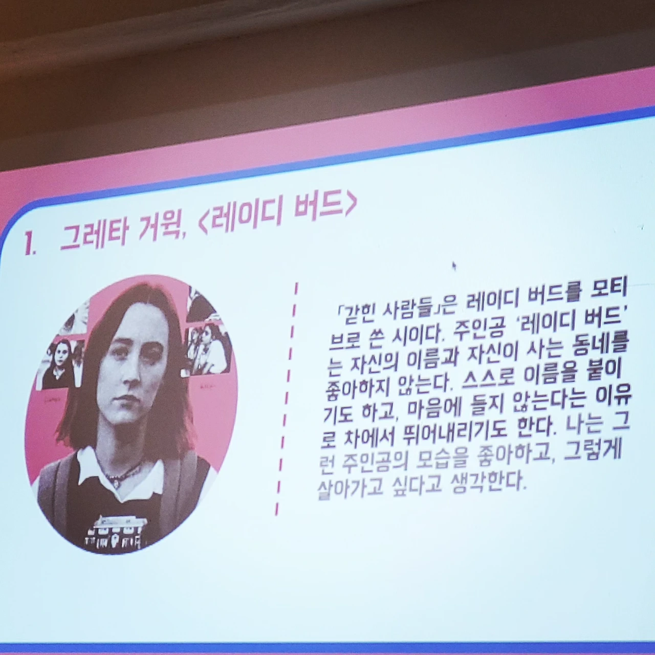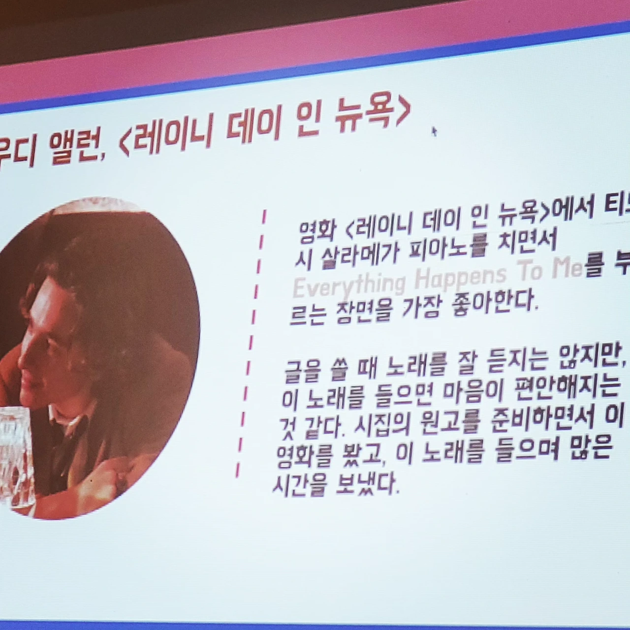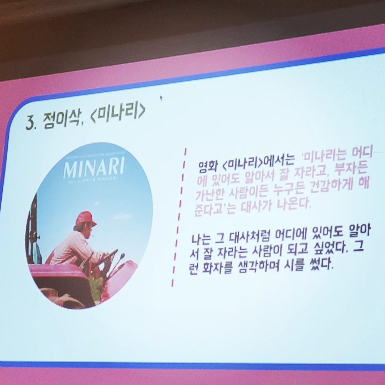 자신이 준비해 온 ppt를 보여준다. 12개의 시를 쓰게 한 소스리스트를 이야기한다.