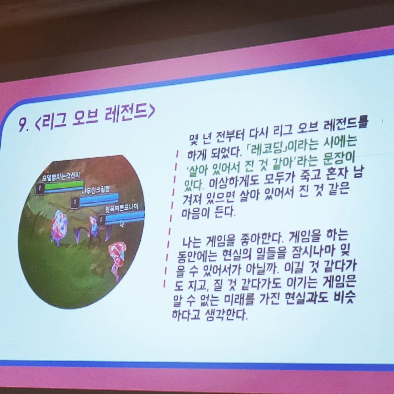 젊은 시인답게 게임을 할 때 떠오른 시에 대해서도 이야기한다.
