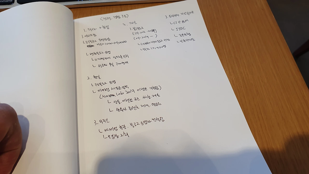 그래서 나는 경력기술서를 쓰면서 내 경험을 3가지로 압축했다. 1) 회사와 창업 등 단체에서 했던 경험, 2) 프리랜서로서 기업과 콜라보로 일했던 경험, 3) 개인 블로그 운영 경험으로 말이다. 경험을 3개로 압축한 기준은 "협업과 개인으로서 일한 경험"이었다. 회사는 나 혼자 일하는 곳이 아니기 때문에, 내가 팀으로서 융화되려면 같이 일한 경험이 필요하다. 또, 프리랜서로서 꾸준히 콘텐츠를 만들었고, 나에게 외주를 줬던 곳이 CJ E&M, JTBC, KB 국민은행, 인큐 등 기업이었기 때문에 개인 경험도 필요했다.