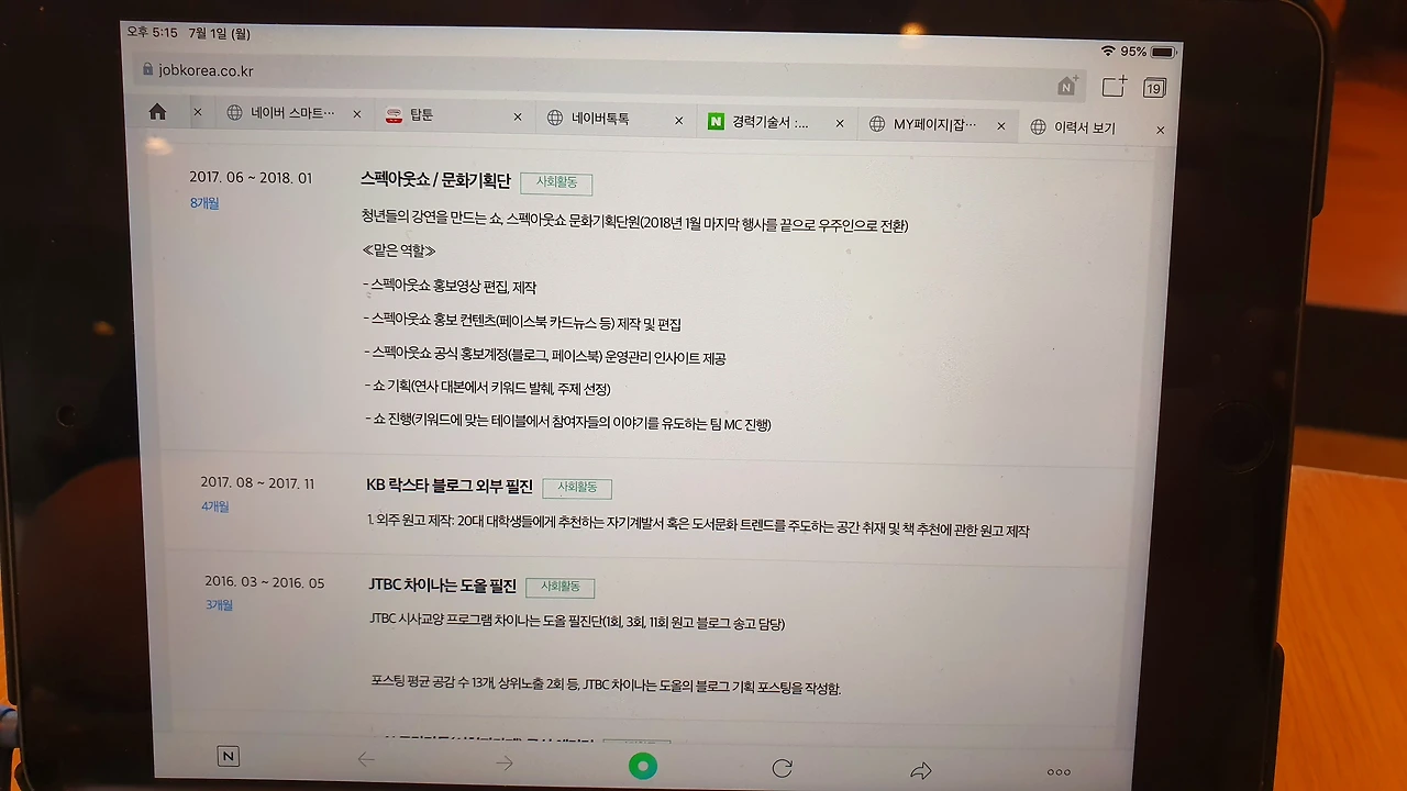 나는 집 근처 카페로 가서, 내 경력들을 차근차근 살피기 시작했다. 경력기술서에 넣을 기록들을 골라내기 위해서였다. 블로그 활동을 시작했던 2012년부터 지금까지 7년 간, 회사원, 프리랜서, 개인 블로거, 인큐 수강생 등등 많은 활동을 했다. 하지만, 경력기술서에 이 모든 것들을 쓸 수 없었다. 진급을 안 해도 2년차 정도 경력이 쌓이면 쓸 수 있는 게 경력기술서였지만, 경력기술서는 철저히 내가 어떤 일을 해 왔는가를 적는 문서였기 때문이다.