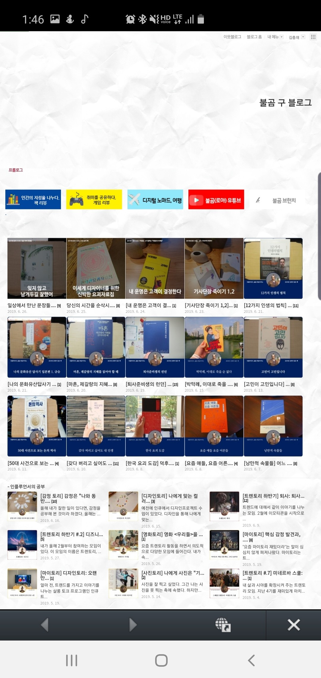 그게 내 블로그를 인기 있게 만들었다. 공들여 쓴 책리뷰는 당시 베스트셀러 작가 분들이 소문을 내주셨고, 드라마 리뷰는 방송구성작가과정 합격, tvN 드라마톡 에디터 대외활동, JTBC 차이나는 도올 필진단 프리랜서 역할을 수행하게 해줬다. 책리뷰는 국민은행 락스타 홈페이지에 책 콘텐츠를 만드는 에디터 활동을 하게 해줬다. 그후에는 웬만한 직장인 급여 비스무리한 광고수익까지 냈고. 책 이름만 쳐도 내 블로그가 바로 나오게 되었다. 또한, 대형출판사로부터 2년간 정기적으로 신작 도서를 후원받기도 했었다.