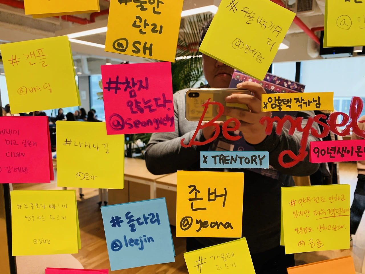 다양한 해시태그가 오갔다. 그 중에서 가장 기억에 남는 이야기는 “오늘의 행복”과 “젊은 꼰대”, 그리고 “가이드가 필요한 세대”였다. 하나씩 풀어보면 다음과 같다.