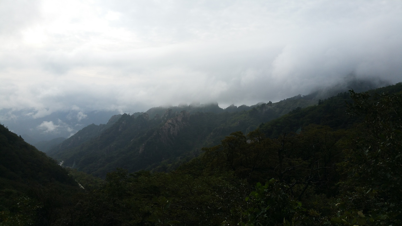 맞은편을 능선을 보니 구름과 산이 어울려져 있다.