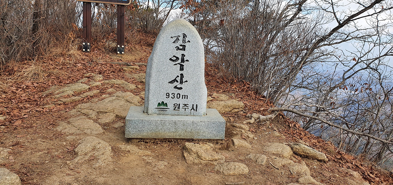 이제 3봉 정상이다. 멀리 봉정상이 보임에도 이곳에 정상석을 설치한 것은 원주시다. 원주시 입장에서 보면 이곳이 정상인 것이다. 감악산 정상은 945m이지만 930m에 정상석을 세워두었다.